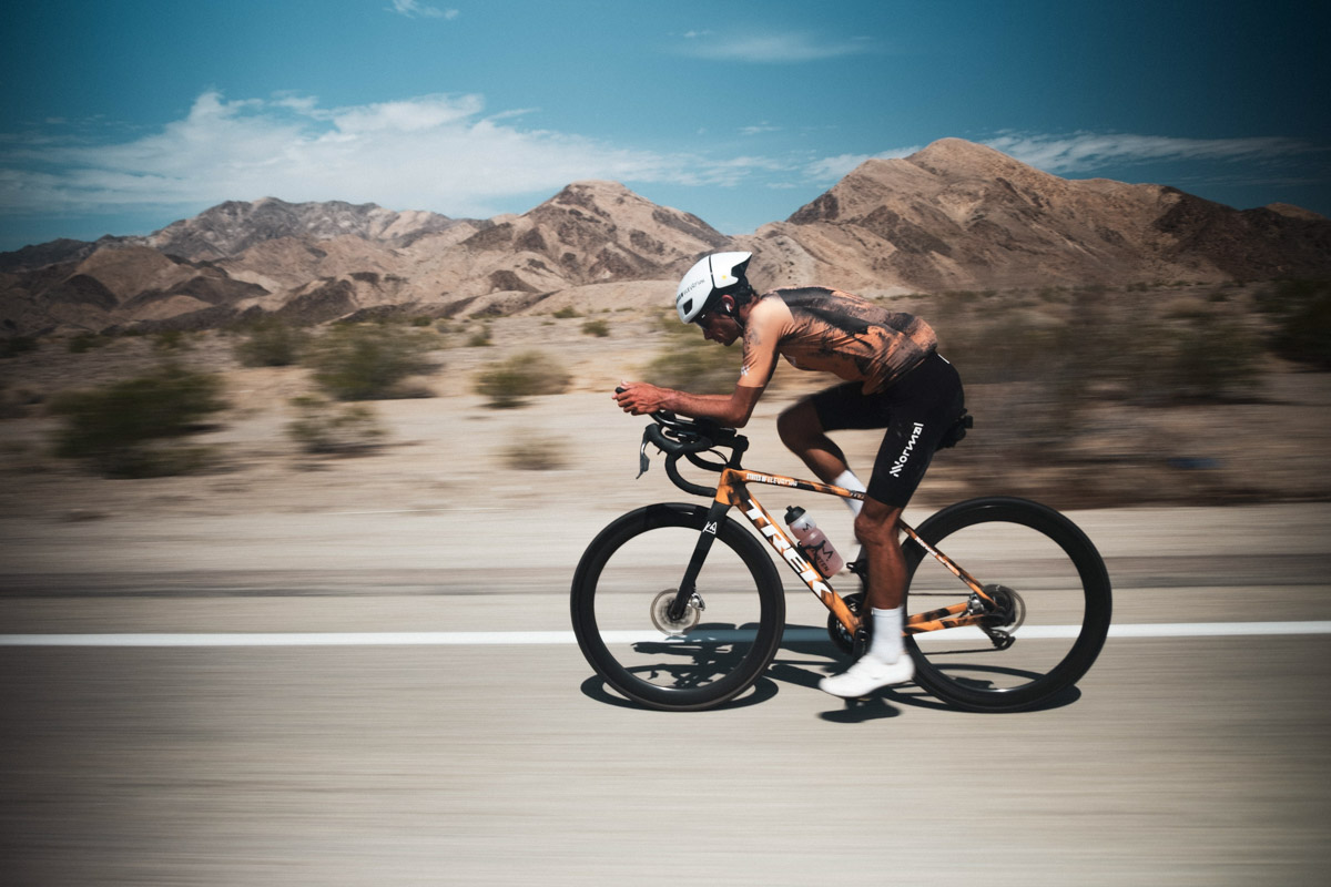 Jornet gets aero while riding across the desert between Colorado and California. Photo: Nick Danielson