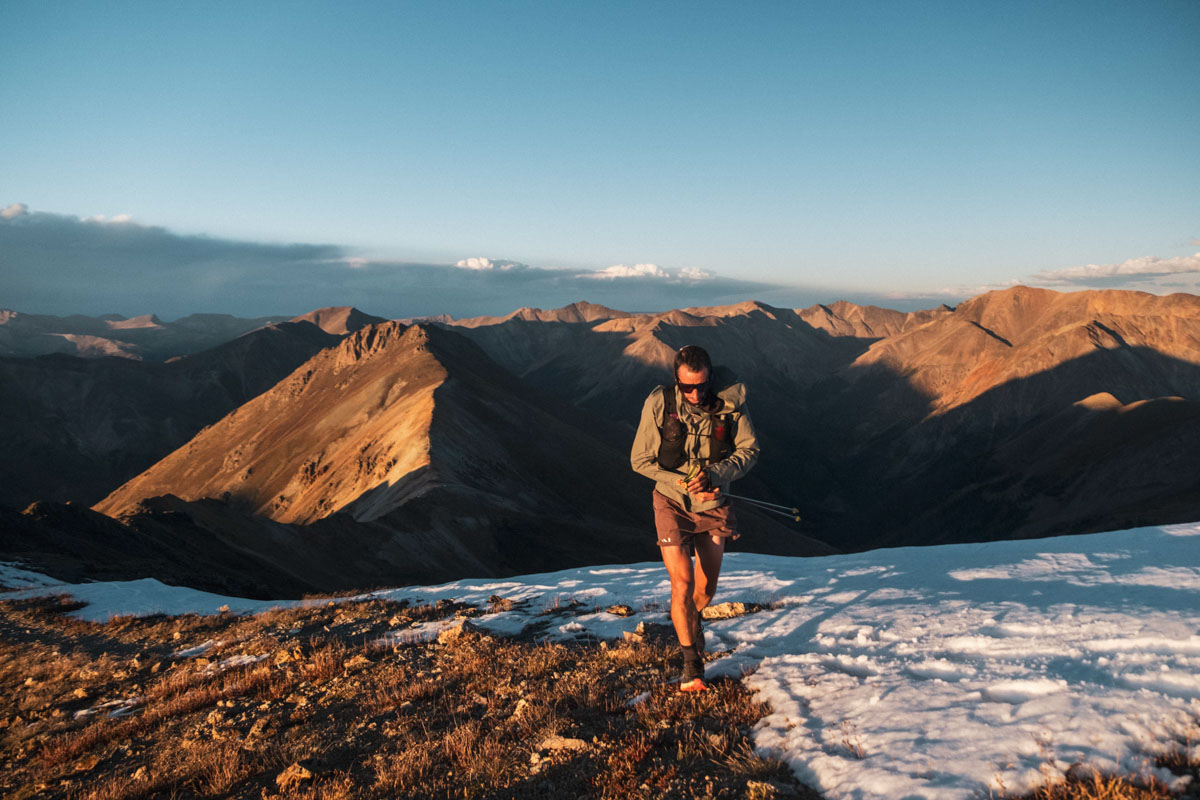 Jornet tops out Handies Peak at sunset midway through his States of Elevation Project. It’s a spot he knows well from his five wins at the Hardrock 100. Photo: Nick Danielson