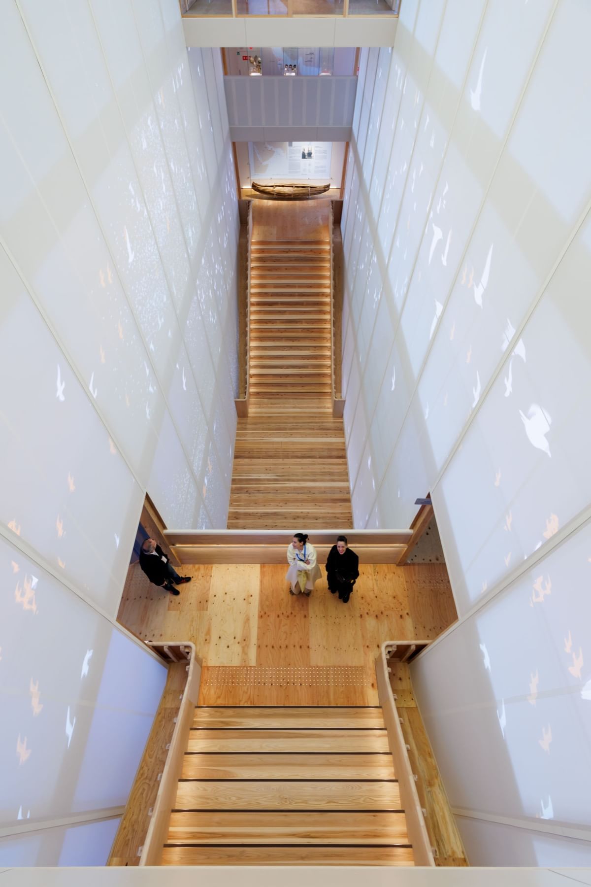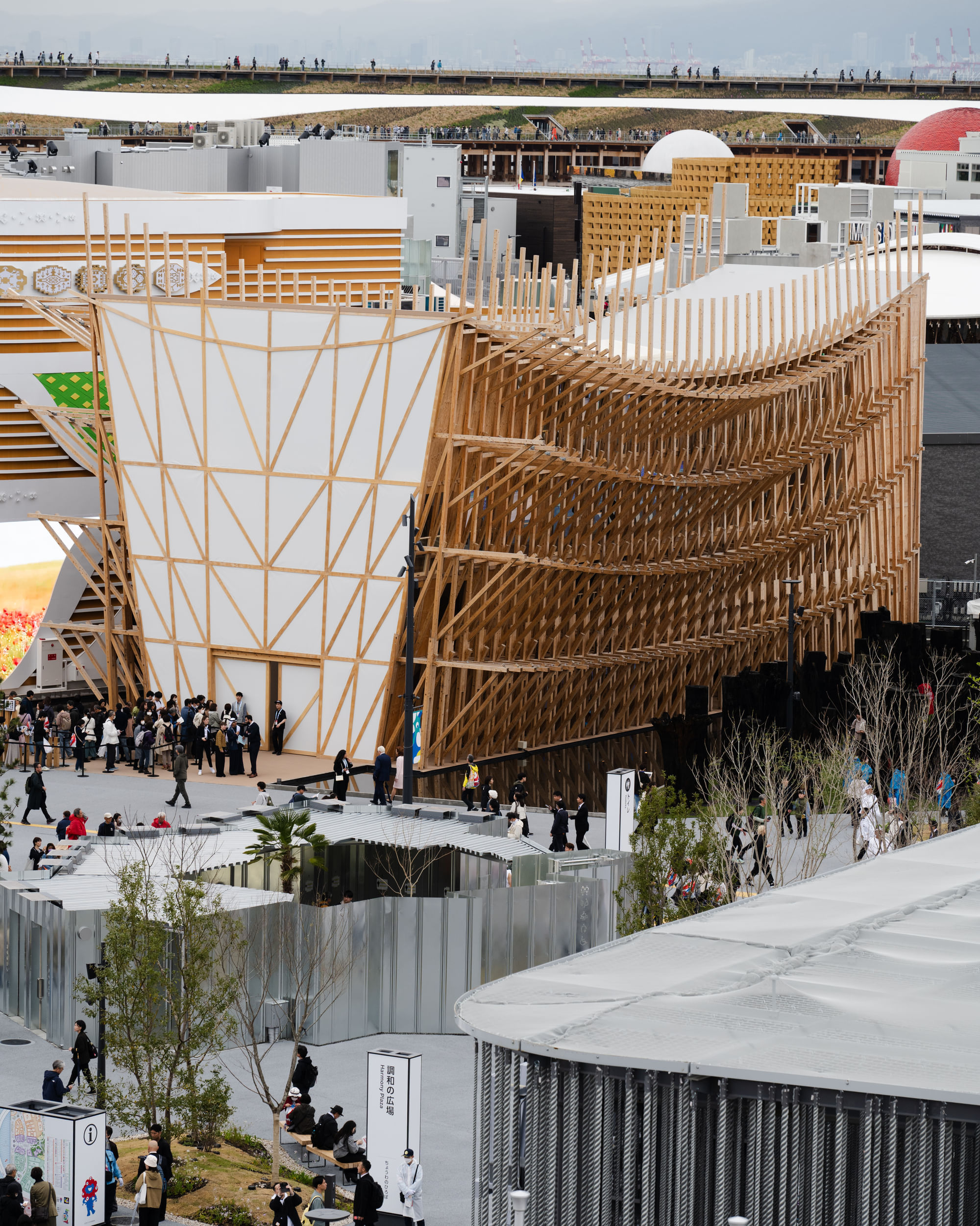 Internally, the pavilion is arranged across four levels. Among the spaces are galleries to host artist commissions, a café, and spaces for activities that respond to the expo’s umbrella theme, ‘Designing Future Society for Our Lives.’