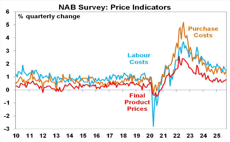Final price pressures rose slightly with overall cost and price pressures contained.