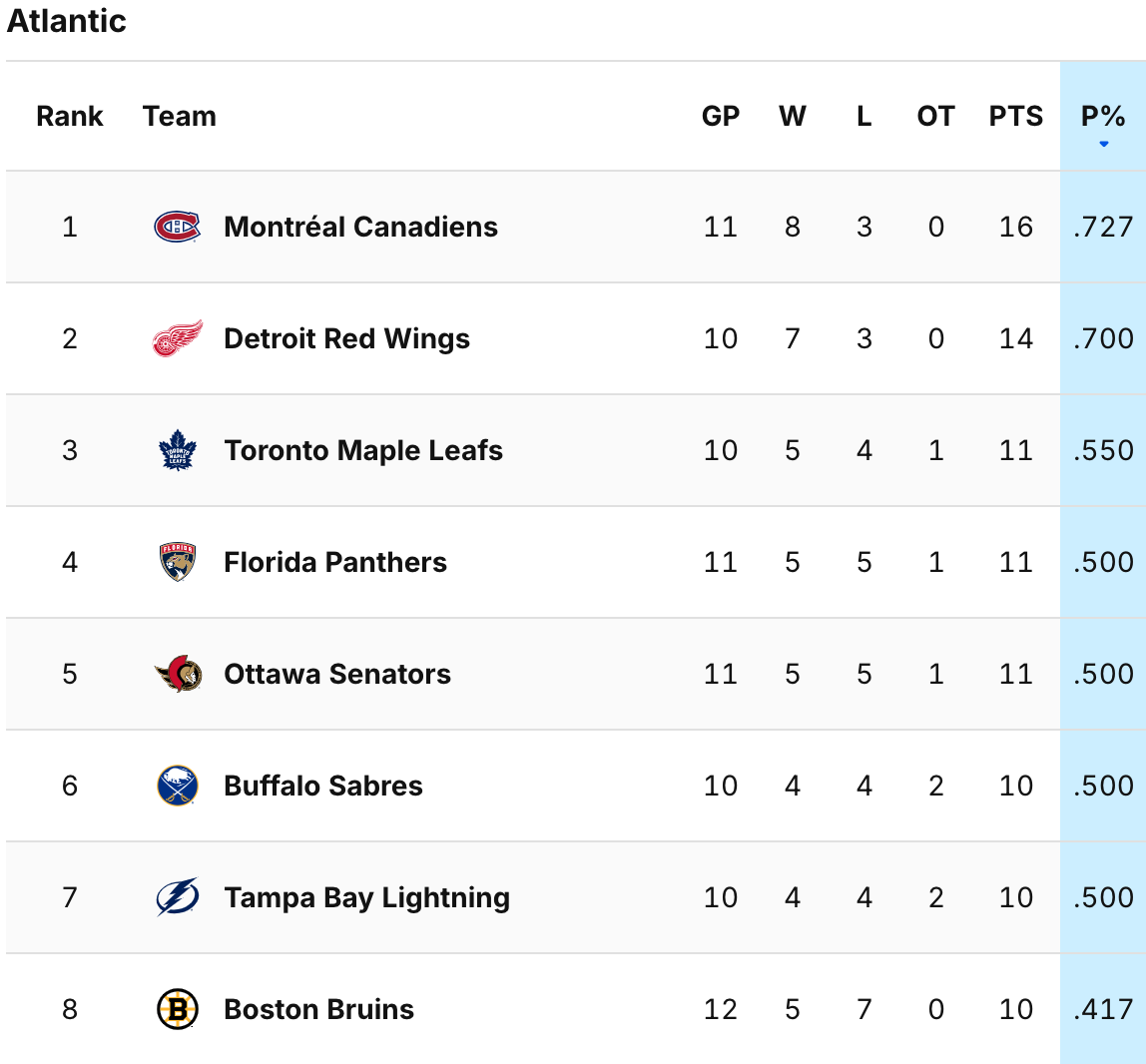 So, are we seeing a changing of the guard? Is it time for the rest of the division to chase Montreal and Detroit, while those who have had a sustained run of success slowly begin to drop, like Boston?