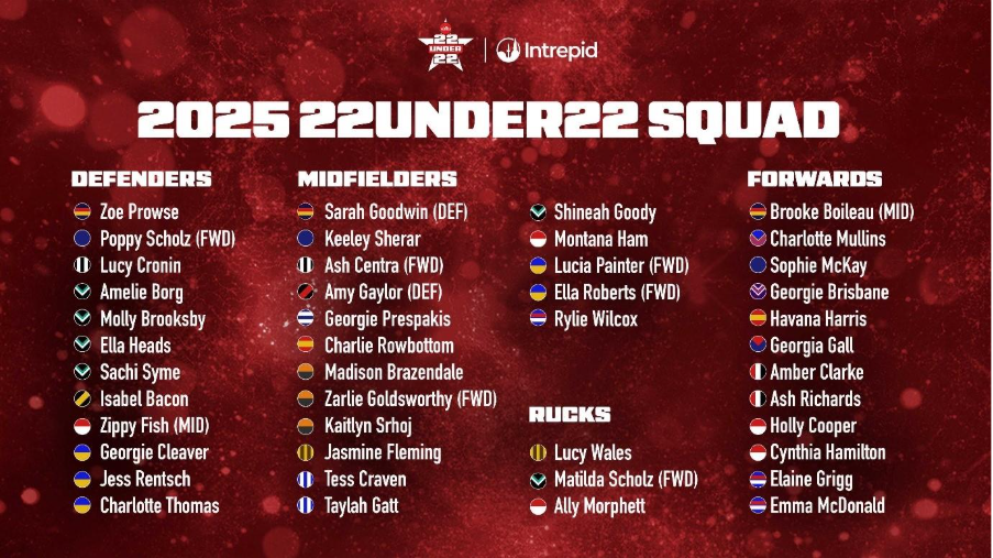 The 44-person squad was assembled by inaugural AFLW player and renowned commentator Kate McCarthy as Chair of Selectors, with support from the AFLPA and Champion Data.