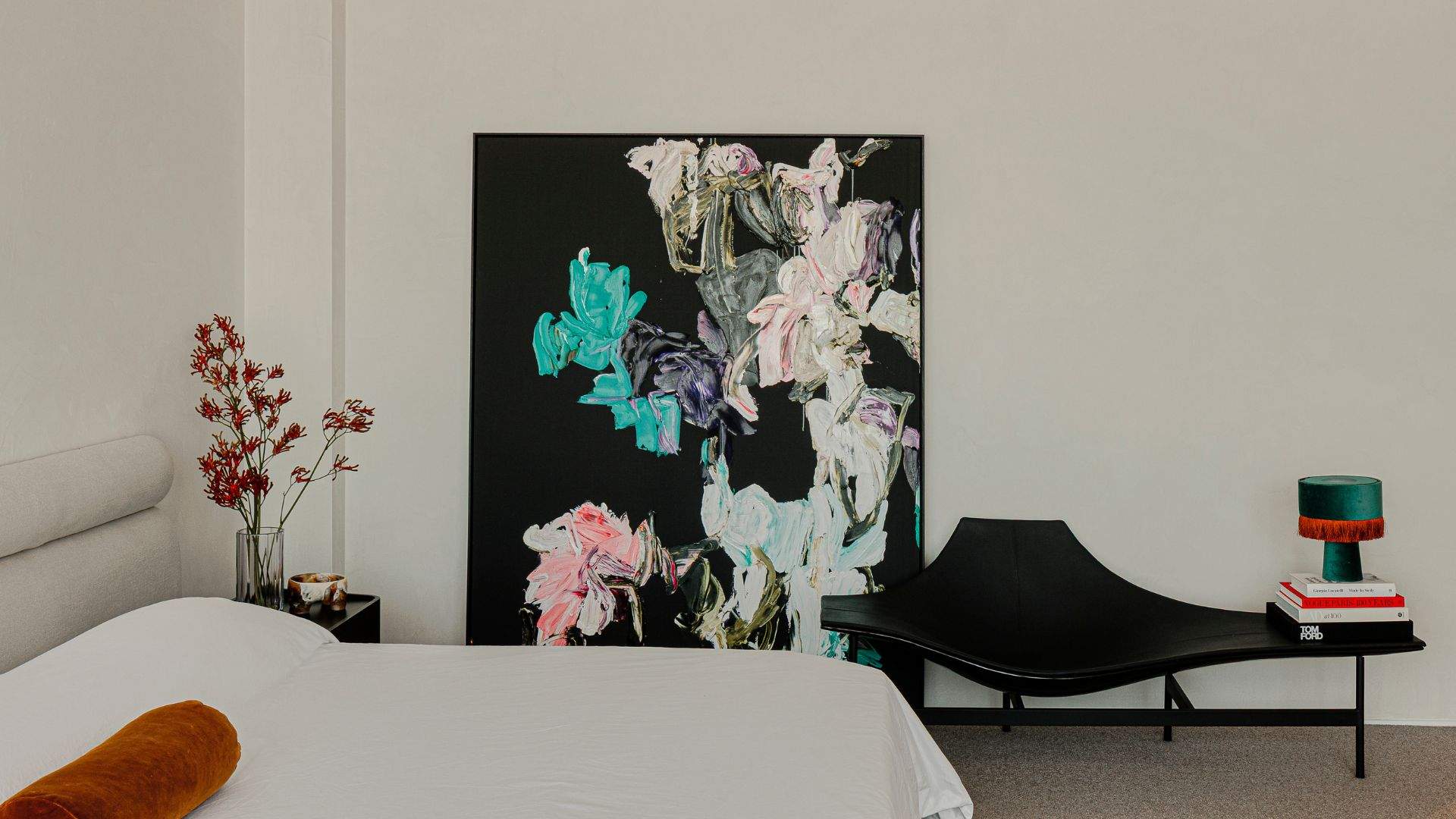 The home’s foundation is calm and organic — a neutral base layered with tactile textures and rich, unexpected details. But like all Twostyle projects, it doesn’t play it too safe. “We’ve layered in the Twostyle signature: bold pops of colour, unexpected details and those wow-factor moments — especially in the powder room,” says Alanah. “It’s that perfect balance of restraint and risk, grounding and play.”
