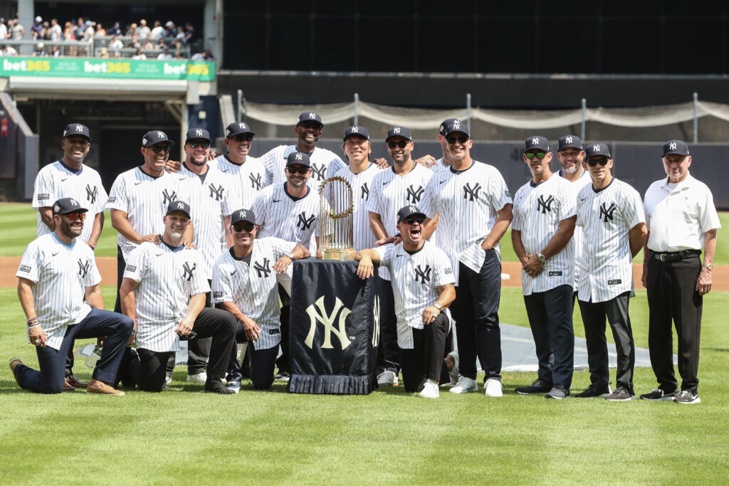 New York Yankees – 27 ChampionshipsMembers of the New York Yankees 2009 World Series Championship team are honored at Old Timers’ Day at Yankee Stadium. Credit: Wendell Cruz-USA TODAY Sports