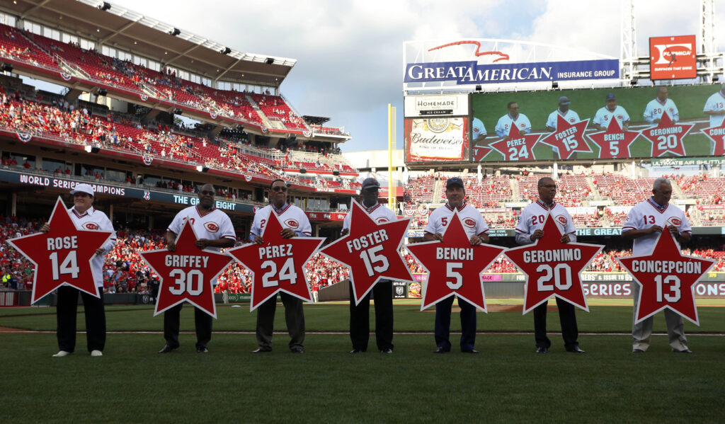 Cincinnati Reds – 5 ChampionshipsCincinnati Reds players from the 1976 World Series champion team are honored before a game against the San Diego Padres at Great American Ball Park. Mandatory Credit: David Kohl-USA TODAY Sports