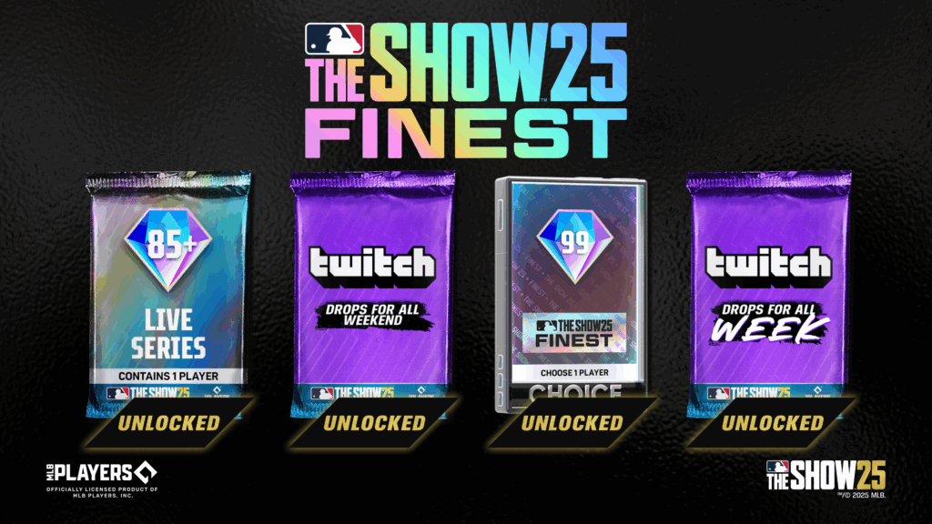 That’s not all. Twitch Drops for All Weekend and Twitch Drops for All Week have been unlocked! Twitch Drops for All Weekend kicks off Friday, November 7 and runs through Monday, November 11. Tune into any stream in the MLB® The Show™ 25 directory with Drops Enabled to earn up to five packs per day.