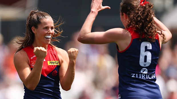 Kate Hore celebrates during Melbourne’s semi-final. Getty