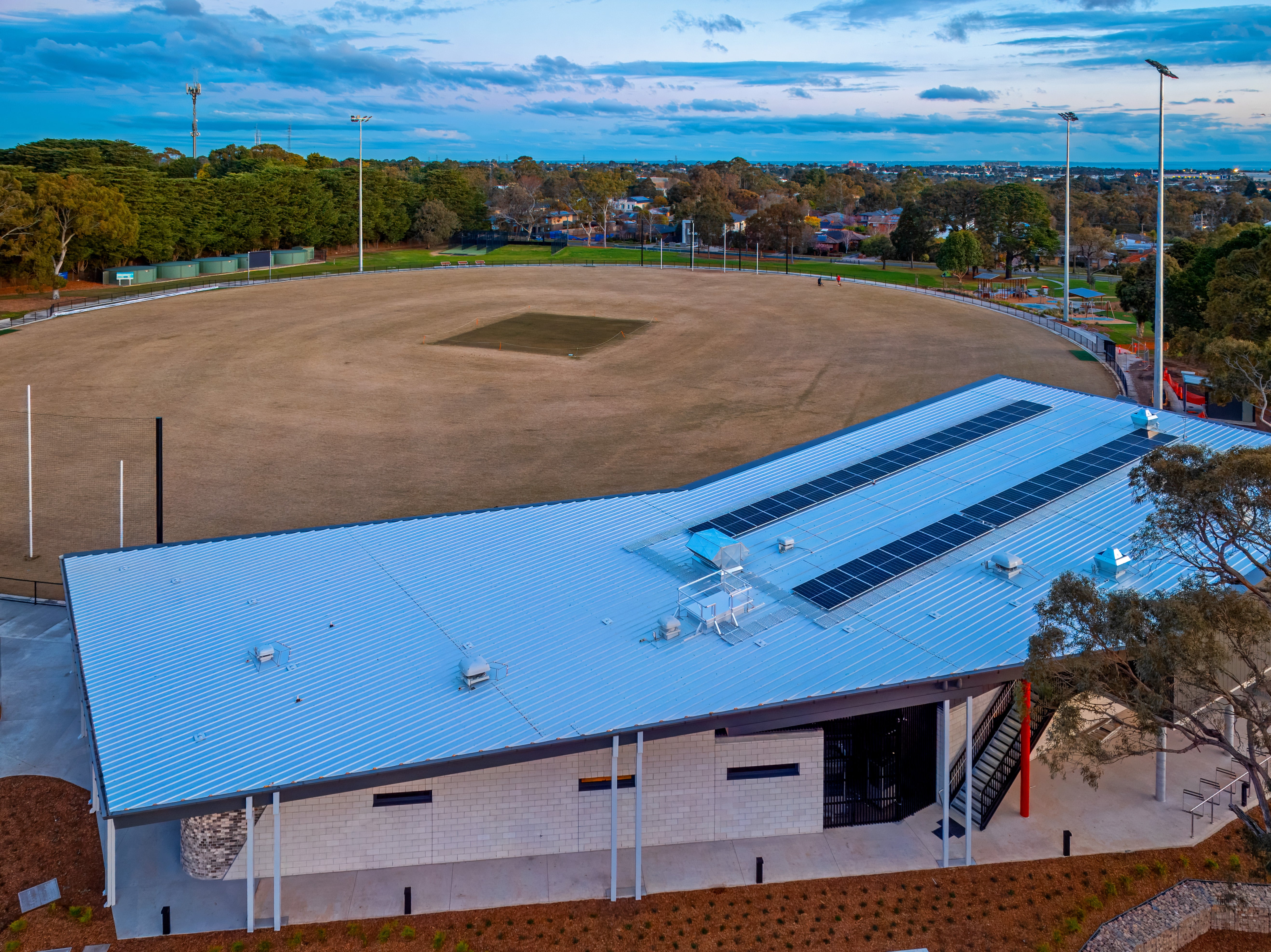 Monash City Council’s redevelopment of the existing oval at Mount Waverley Reserve includes new lighting, along with a new double storey pavilion to meet the increased demand for football participation at the reserve, which is used by Waverley Blues Football Club.