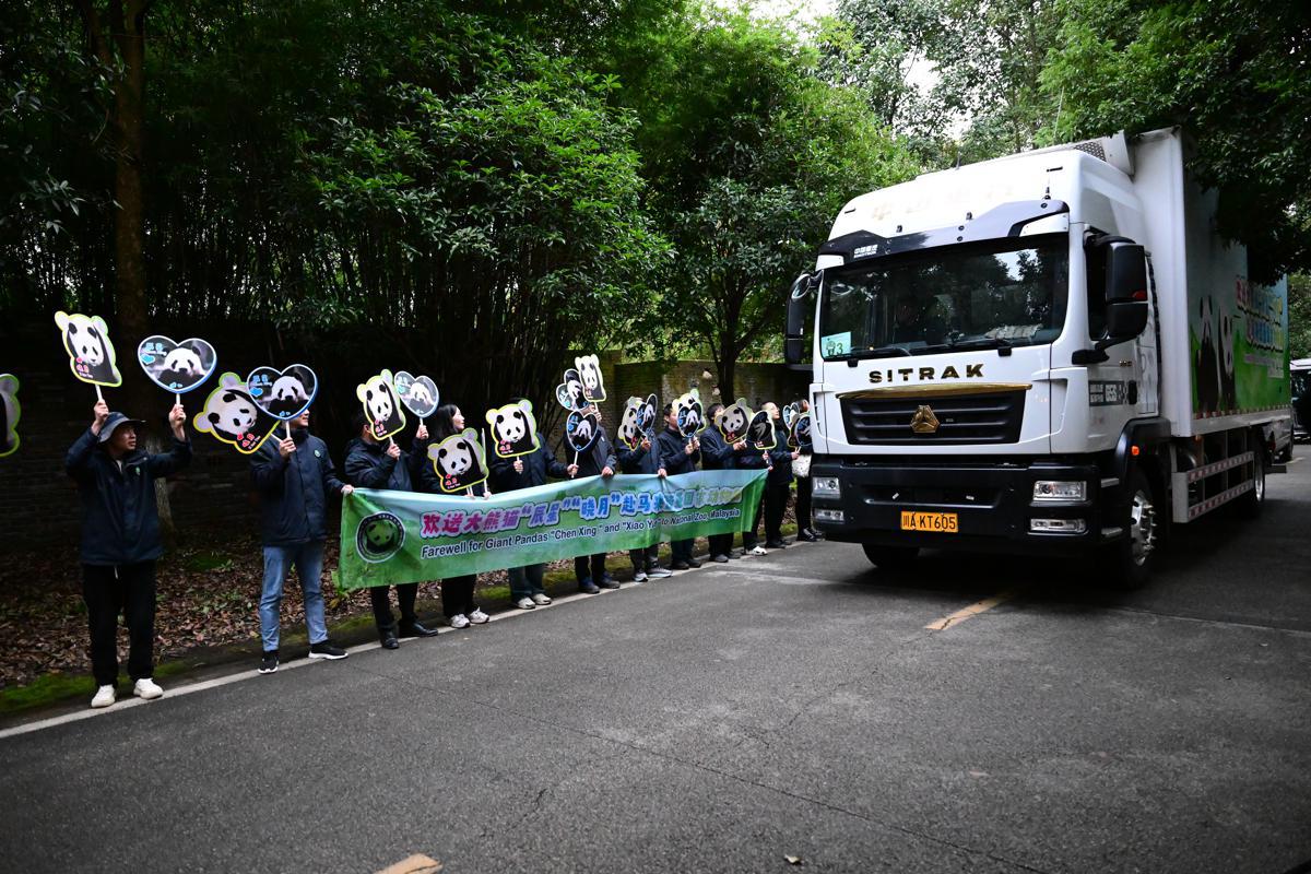 A pair of giant pandas named Chen Xing and Xiao Yue are sent from the China Conservation and Research Center for the Giant Panda in Sichuan province to Malaysia on Tuesday for a 10-year panda conservation cooperation program. [Photo by Li Chuanyou/For chinadaily.com.cn]