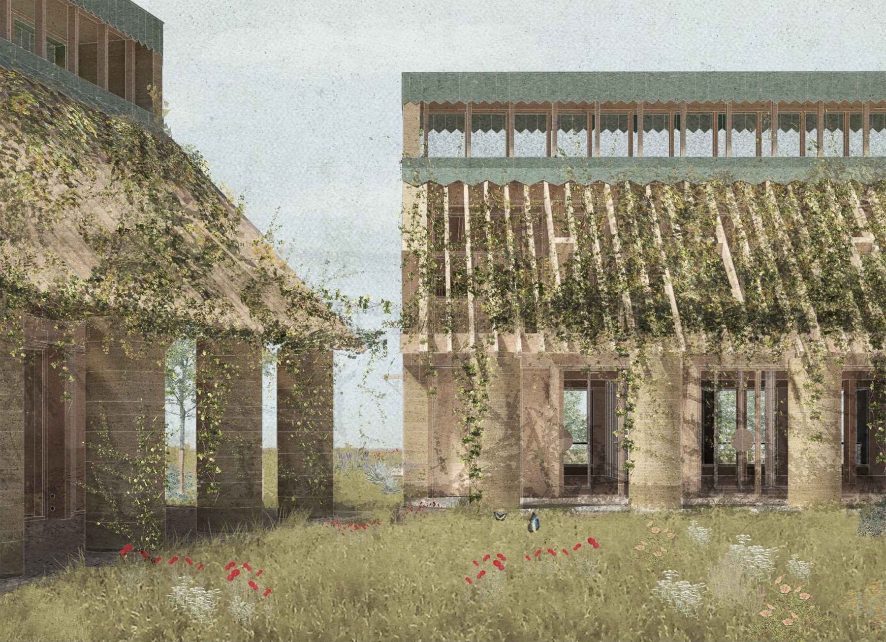 Description: A vocational campus uses recycled materials, passive design, and shared public space to connect education with sustainable building and craft, offering students a hands-on model for learning by making.