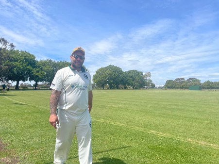 Shaun is one of the more recognisable cricketers in the district. He has a long ponytail, a face tattoo, and is a handy cricketer. He spent the last few seasons playing at Forrest Cricket Club but made the move to Simpson this year. He picked up the next wicket — Xav Prime — caught and bowled trying to pull. The ball hit the toe of his bat and went straight back to the bowler.