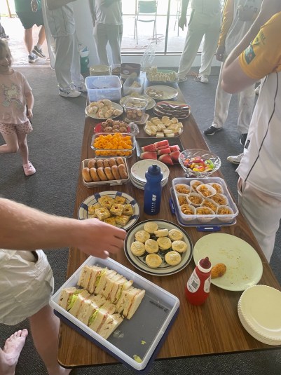 Paul Liistro’s eyes lit up when he saw a wide full toss that he got under. He got under it so much that it went straight up and was safely caught at gully. It led to a little dummy-spit, with the bat thrown, and he needed a breather behind the clubrooms. Later, when his son Oscar did the same thing, Kenny McDonald pointed out to Liistro, “I saw you do the same thing 15 minutes ago.”