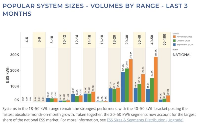 According to industry statisticians, SunWiz, the 50-75 kWh and the 30-50 kWh market segments grew the most over the past month – by 71 per cent and 58 per cent, respectively.