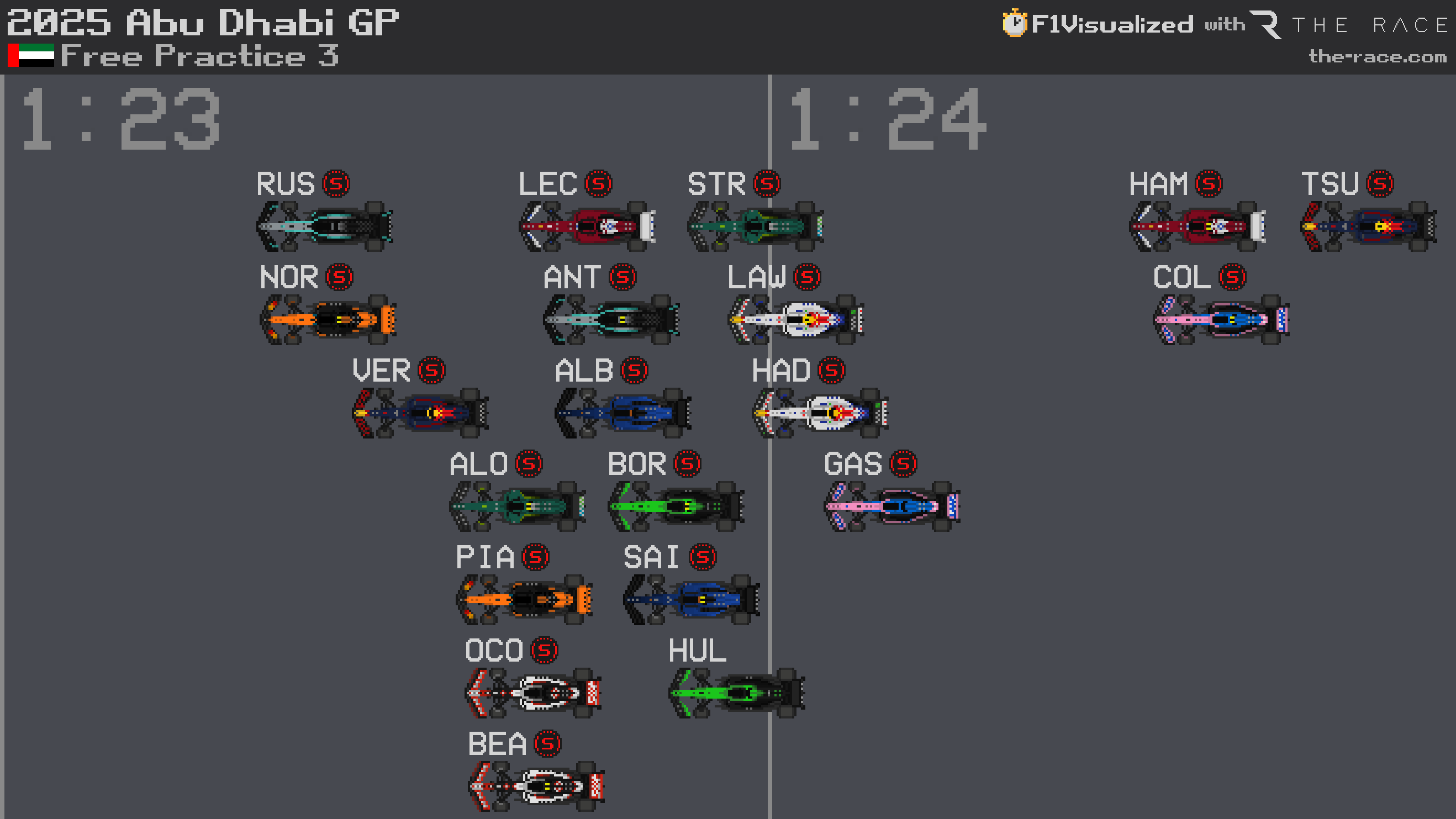 That meant Tsunoda, who at one stage had the fastest time of all in sector two, was stuck in the garage with a broken floor and so he ended up slowest of all.