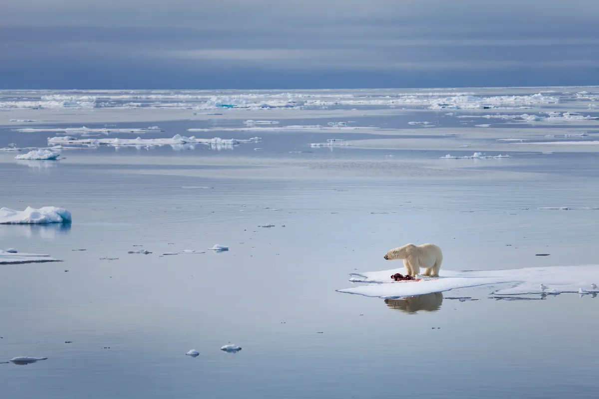 Polar bear on melting sea ice. © Chase Dekker/Getty