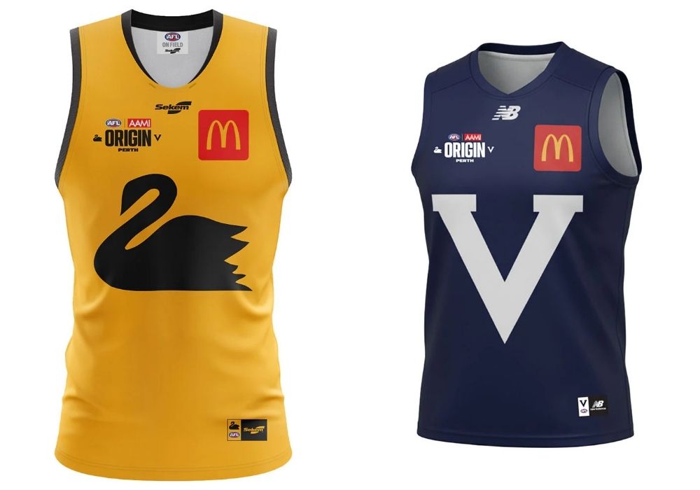 Team WA will run out in a locally designed and manufactured jumper that proudly showcases Western Australia’s heritage. Created by Burley Sekem Bassendean, the jumper features the iconic black swan set against gold and black, paying homage to past AFL Origin designs while celebrating the state’s natural emblem.