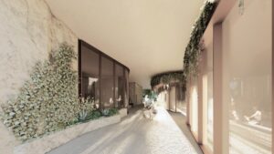 Architectural rendering of the internal residential foyer at the proposed 178–180 Macquarie Street St Lucia development.