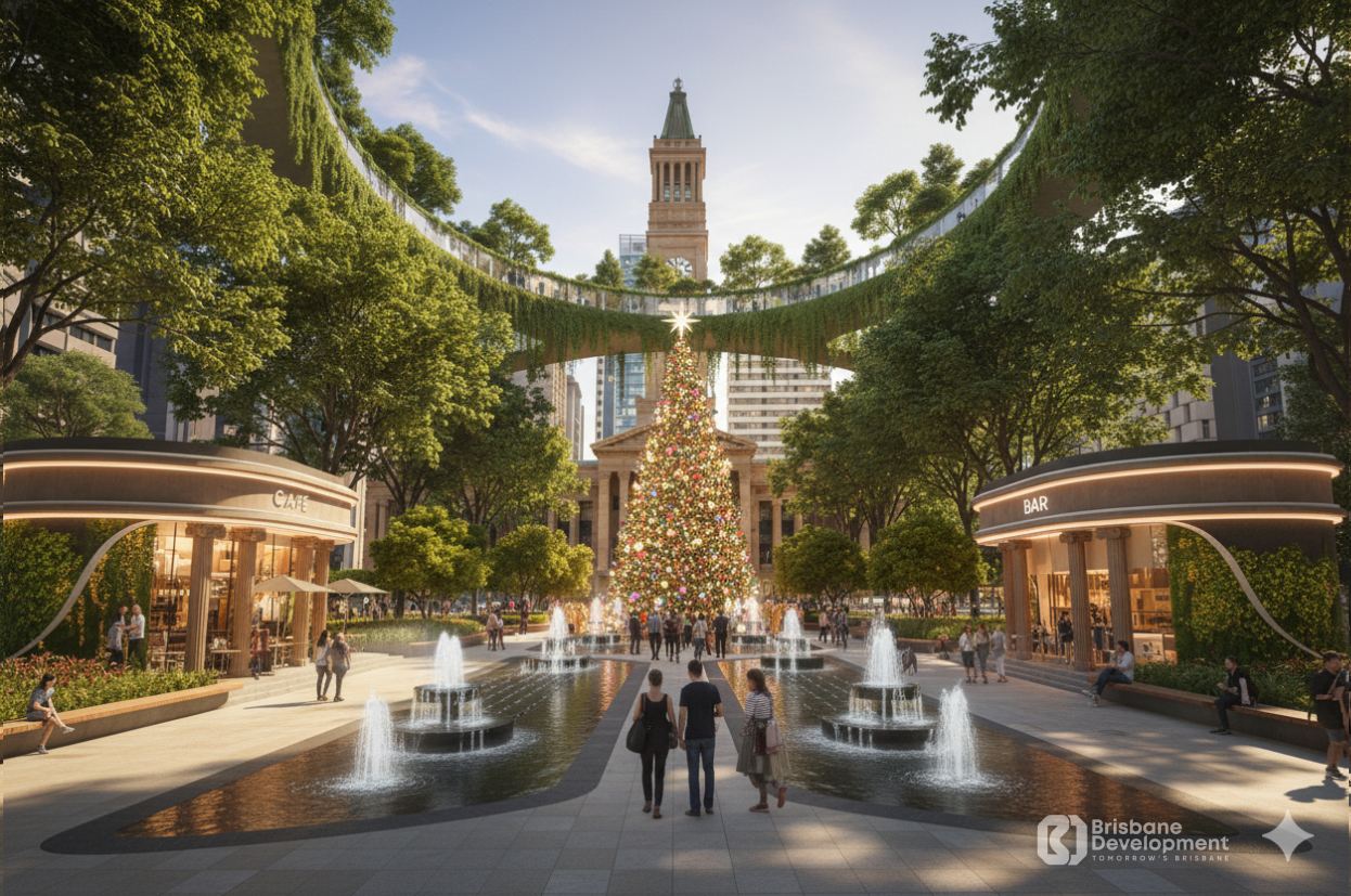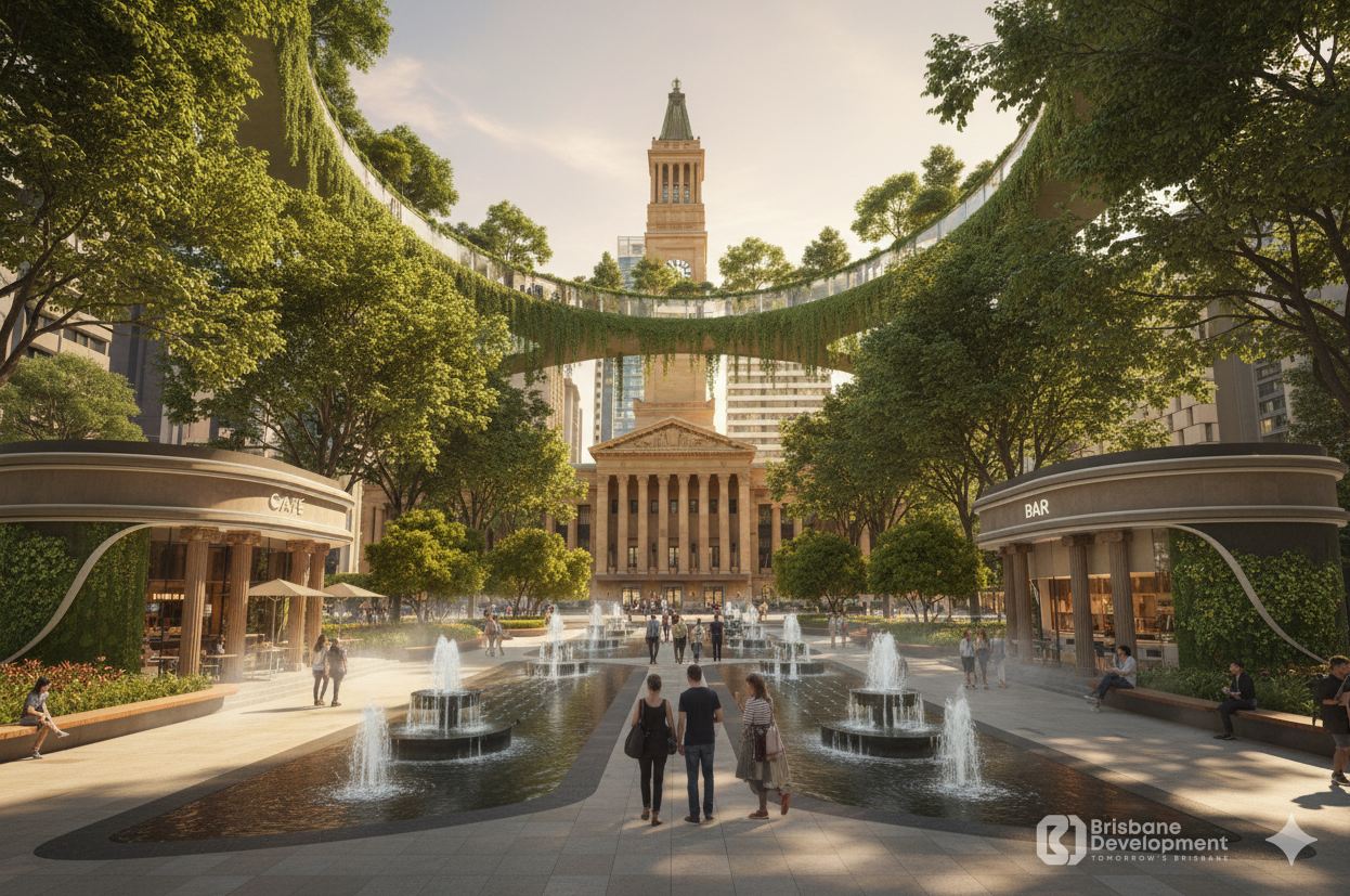 Each of the following ideas imagines how King George Square could transform into a civic heart worthy of City Hall, spaces where classical architecture, greenery, and water combine to create comfort, beauty, and a sense of belonging.