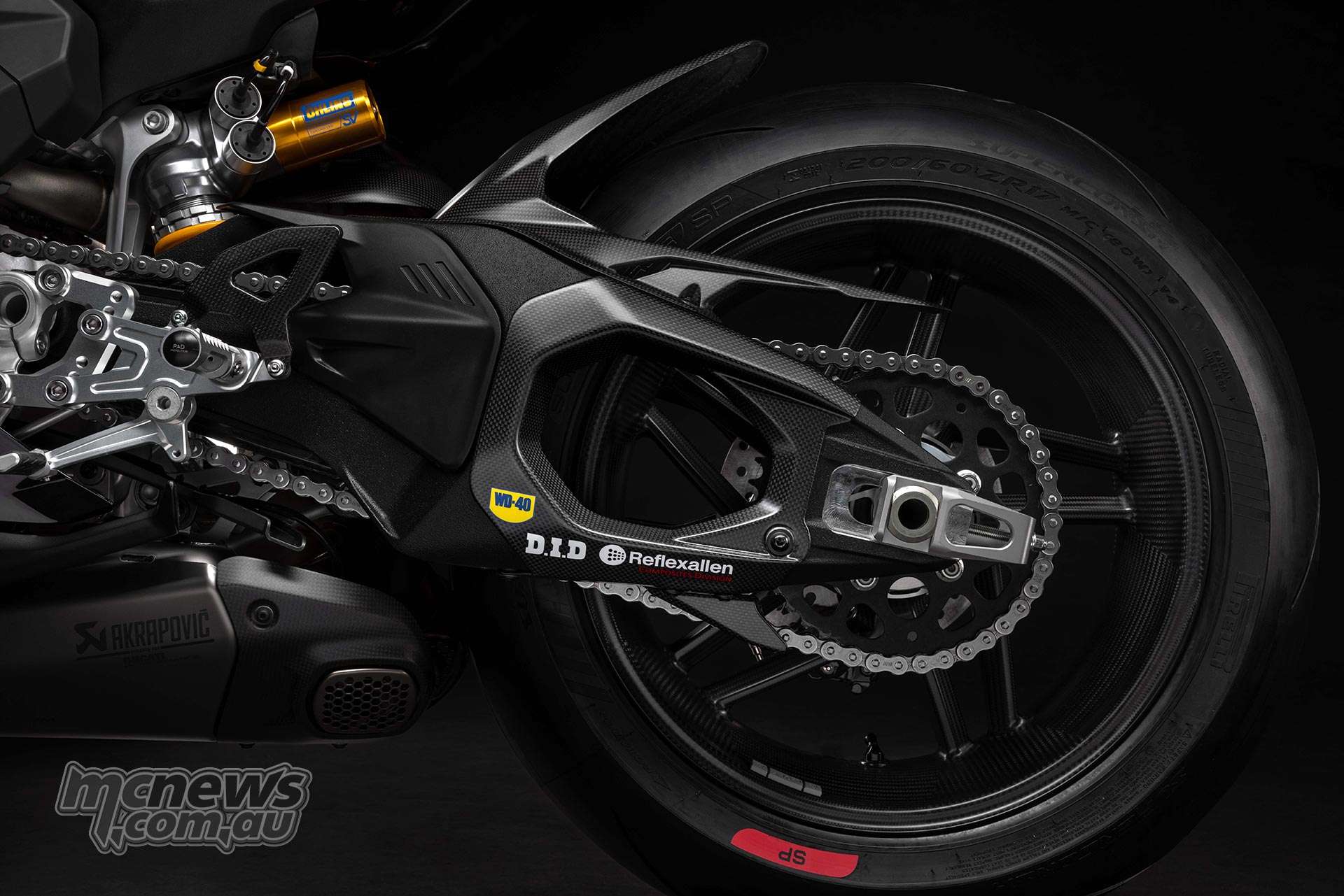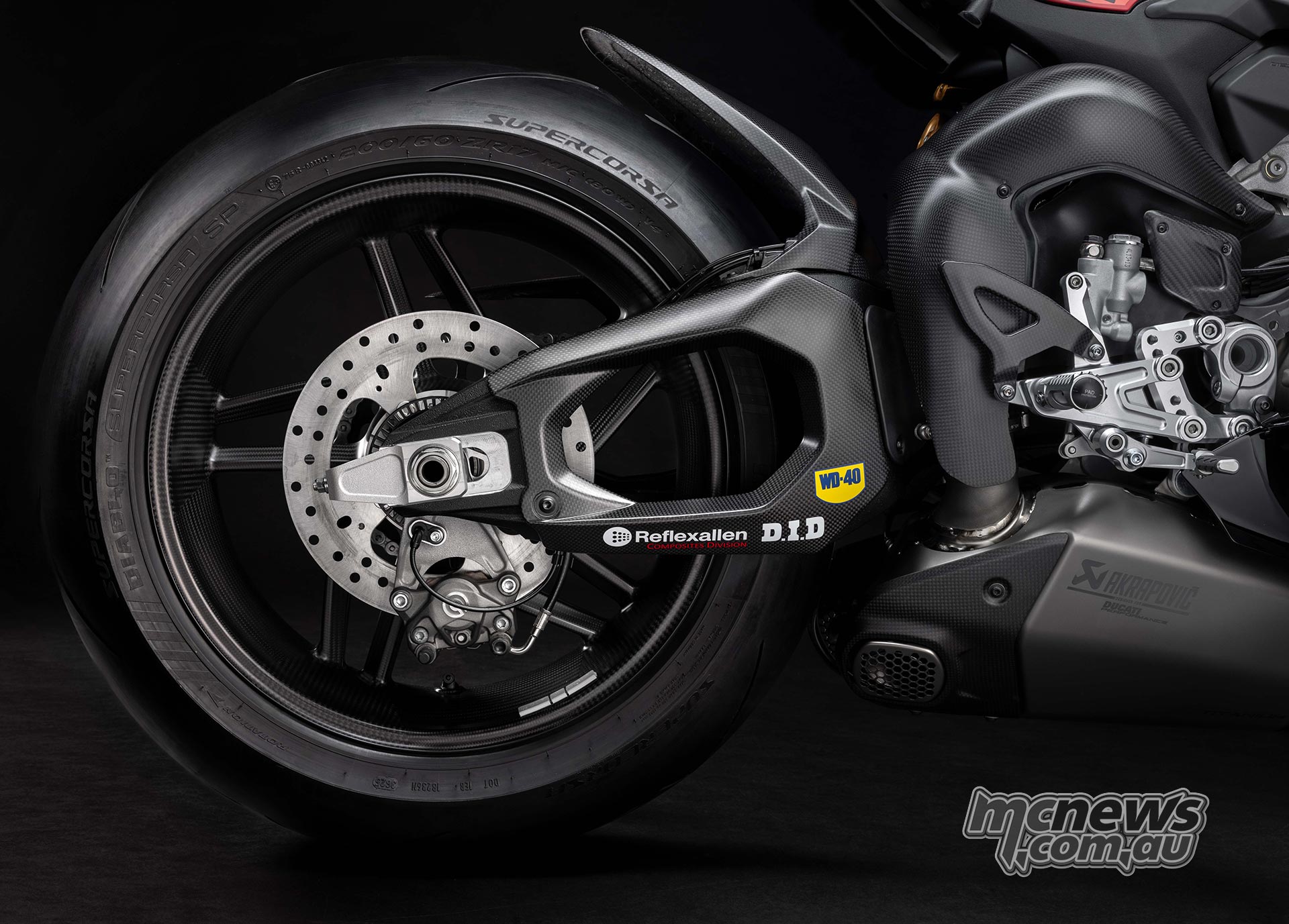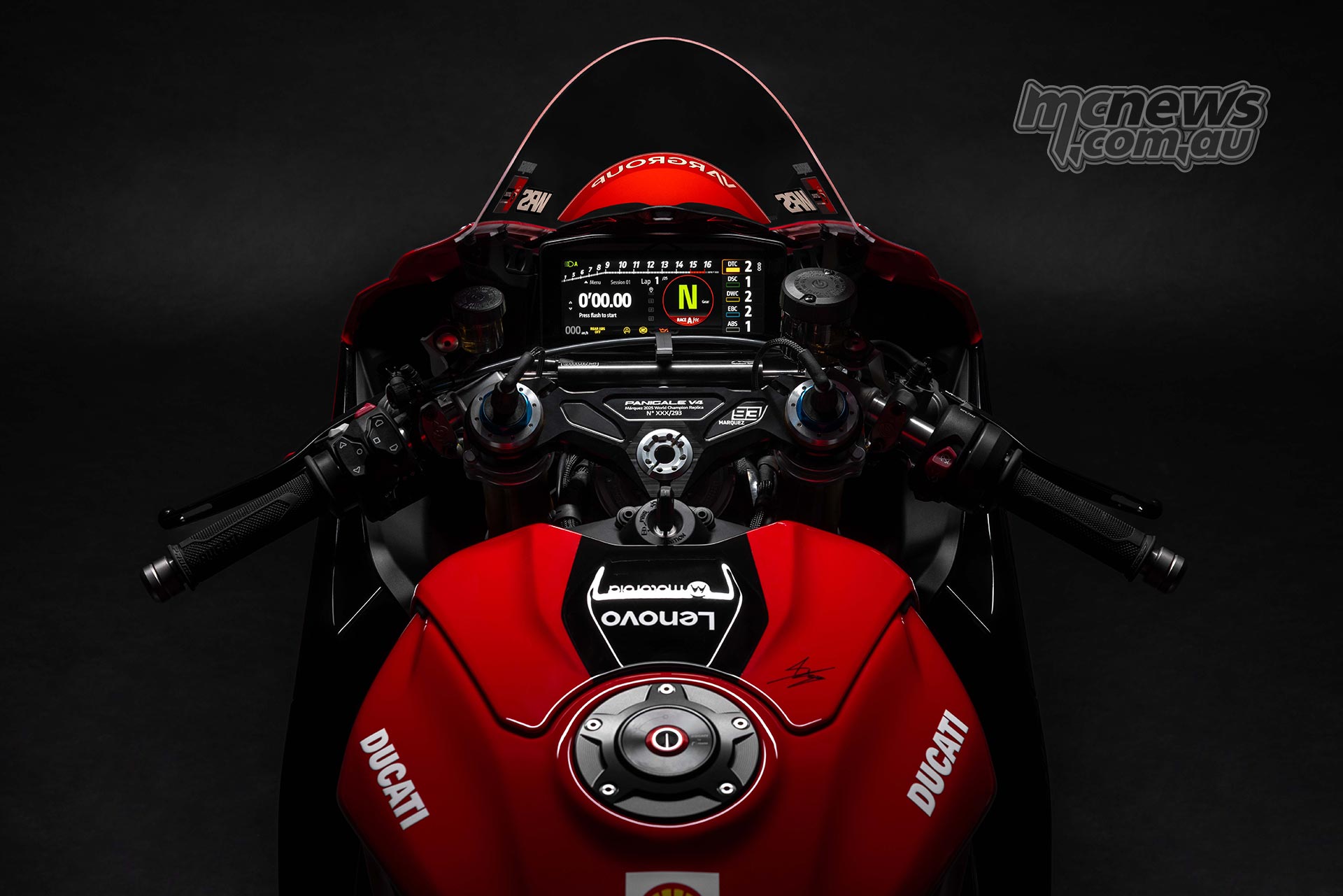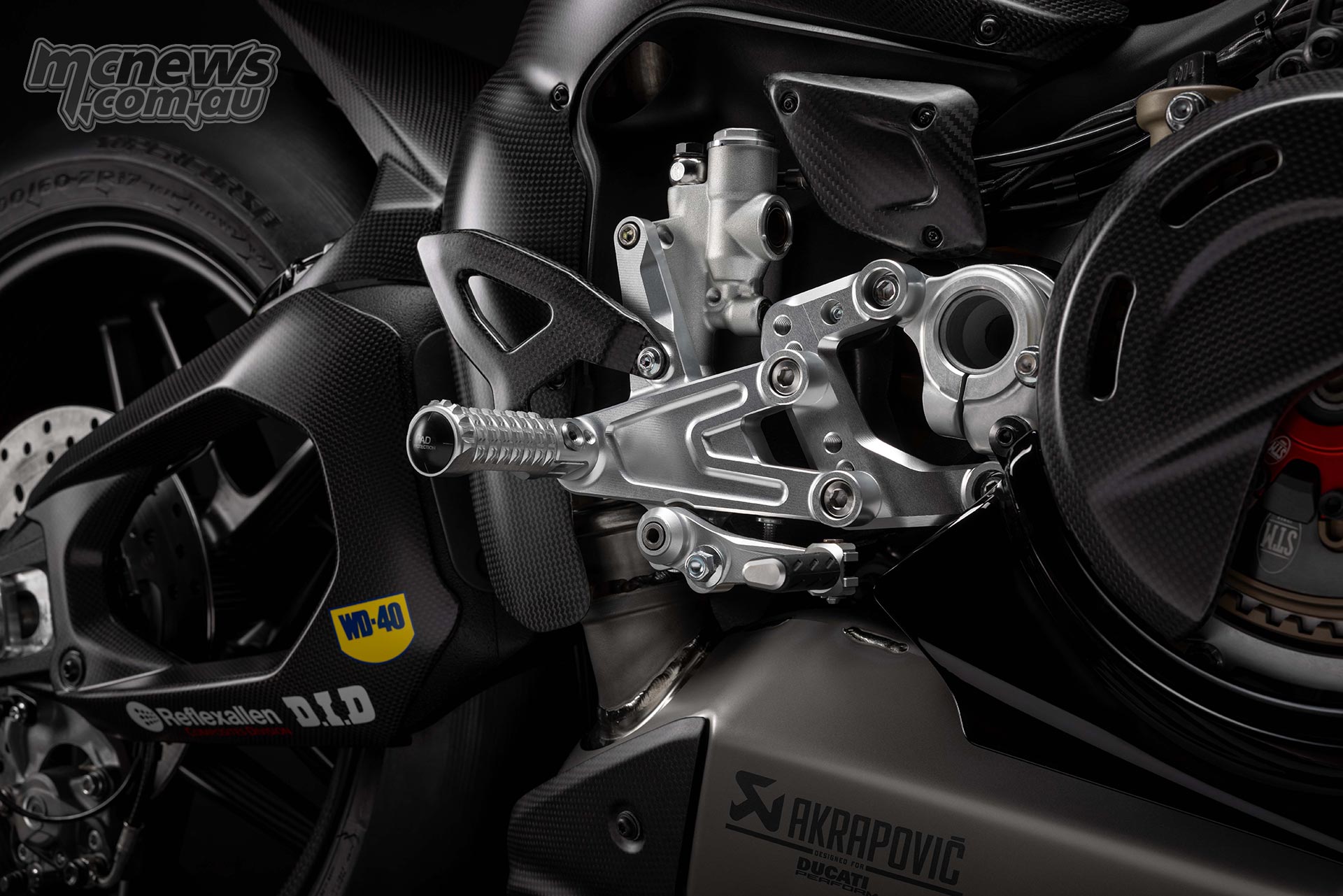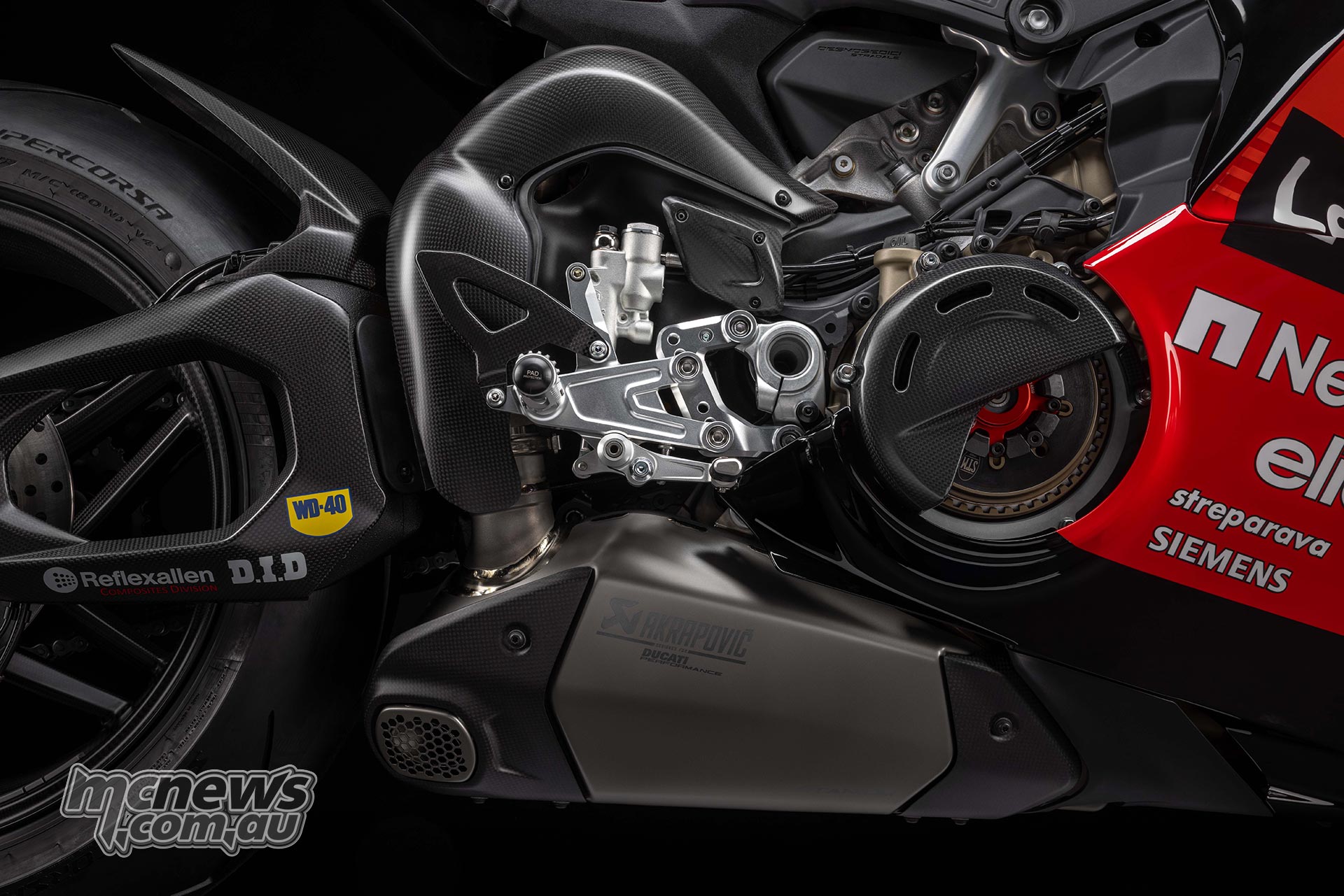 Braking performance is enhanced via Ducati’s Front Brake Pro+ system, incorporating Brembo T-Drive discs, GP4 Sport Production calipers and an MCS 19.21 master cylinder. Additional equipment includes a dry clutch, adjustable billet aluminium footpegs, GPS module, Alcantara seat and a dedicated dashboard animation at start-up.