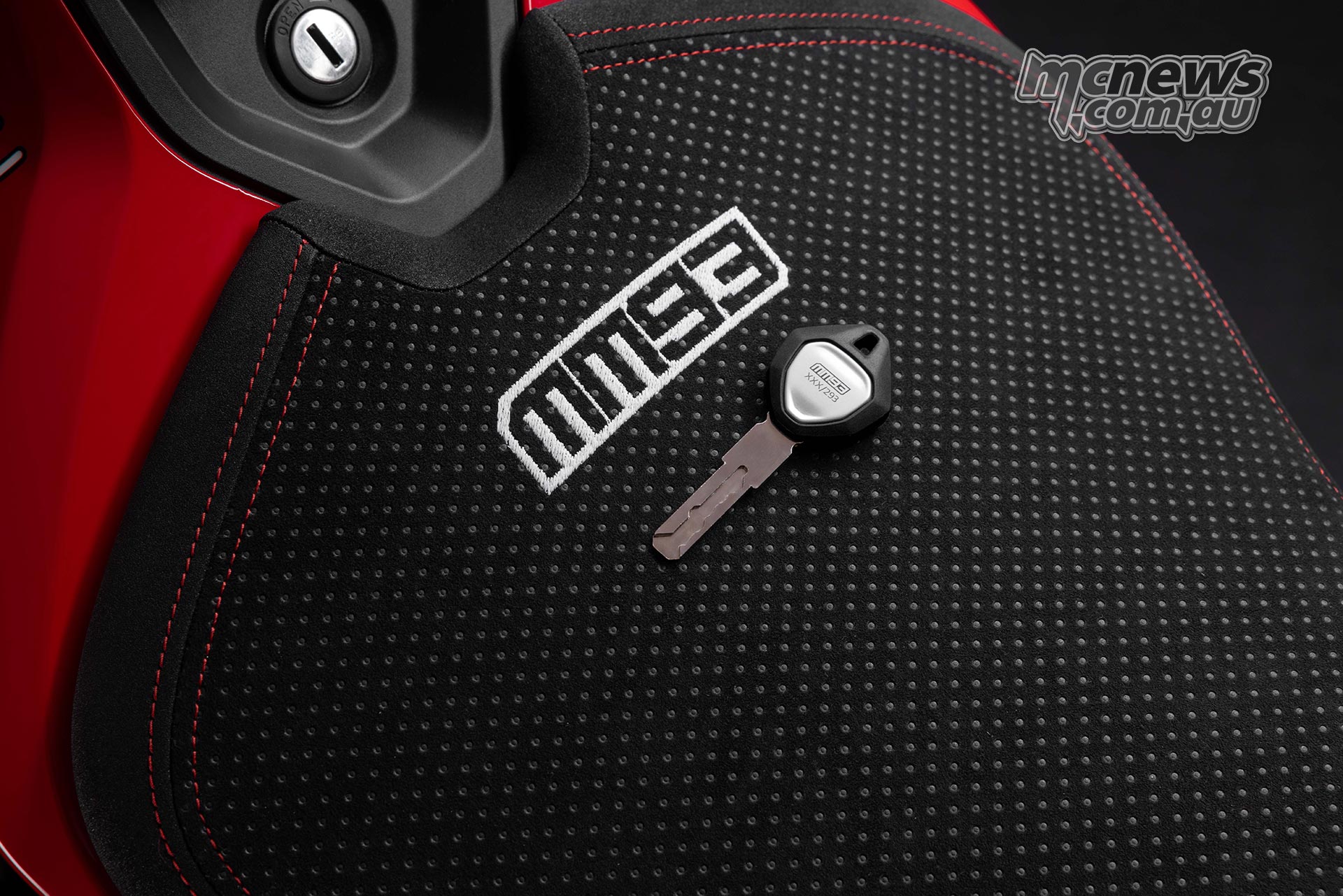 Each bike is supplied with track-only components including a billet aluminium racing fuel cap, carbon fibre brake ducts, an open clutch cover and a license plate removal kit, along with a certificate of authenticity, motorcycle cover and a custom wooden transport crate. The billet-machined triple clamp and ignition key are engraved with the model name and individual serial number.