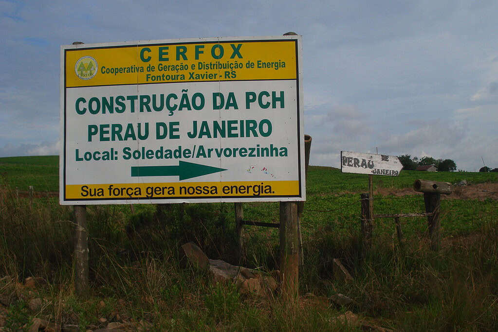 Sign informing about the construction of the Perau de Janeiro Small Hydroelectric Power Plant. Image courtesy of Luis Marin.