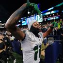 Dotson was carted off the sideline with an ankle injury and did not return. He was later seen outside the Rams’ locker room on crutches and with a walking boot on his left foot.