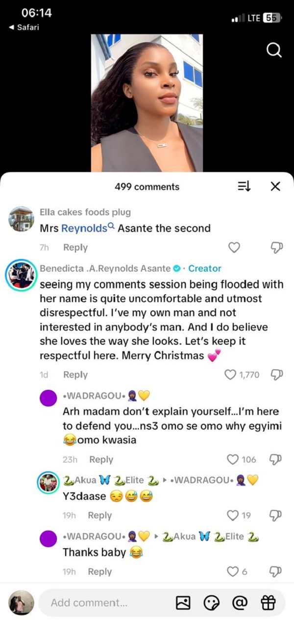 “Seeing my comment section flooded with her name is very uncomfortable and extremely disrespectful. I have my own man and I am not interested in anybody’s man. I believe she loves how she looks. Let’s keep it respectful. Merry Christmas,” she wrote.