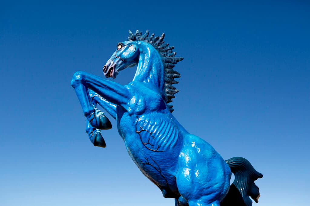 Luis Jimenez, the artist behind the sculpture, died in 2006, after a part of the horse came loose while he was working on it. The loose piece pinned him to a support beam and severed one of his arteries.