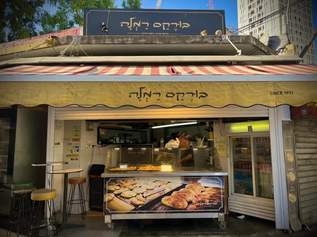 Borekas Ramle: Turkish Borekas – hand rolled, one layer of dough, rolled into snail, cooked on cast-iron. Offered in 4 different fillings. Best in the shuk, and possibly best borekas in Jerusalem.