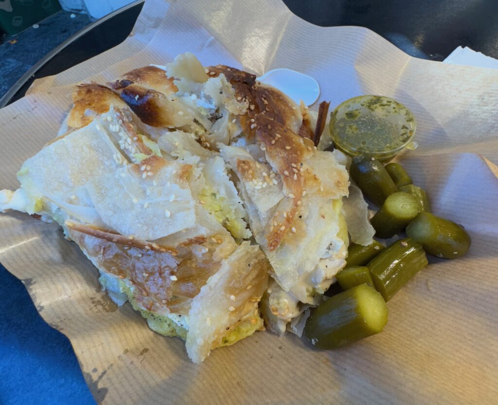The simplest way to run a shuk crawl is to start with sweet and dairy-leaning stops first, then pivot into meat and pareve for the rest of your route. If you’re going on a Thursday night or Friday morning, build in extra time for lines and consider sharing one item at each stop instead of ordering full portions, it’s the easiest way to hit more places without burning out early. Also, bring water, the shuk pacing is faster than it looks and it can often be very hot and humid, especially in the warmer months.