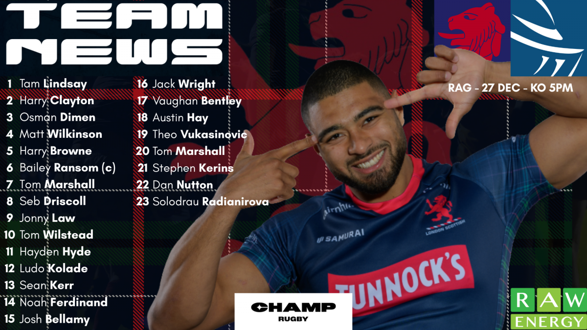 London Scottish have named their side to take on Doncaster Knights as part of a Christmas festival of Rugby on 27th December. Bryan Redpath and Joe Gray have kept a relatively similar team only making just three changes to the matchday squad that travelled to Ampthill.