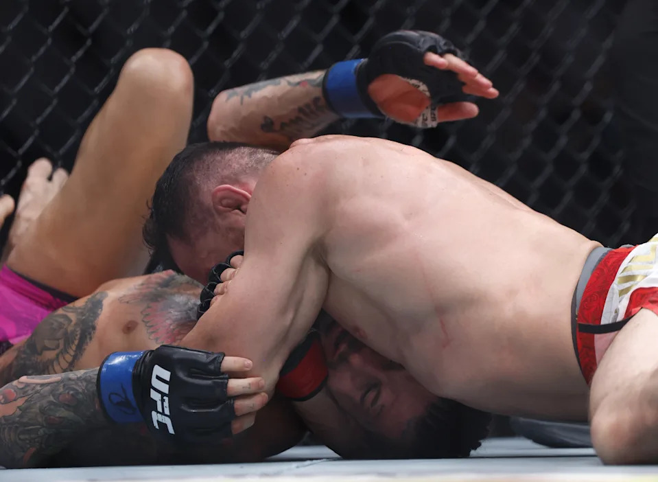 Dvalishvili’s rematch with O’Malley was so much more one-sided than the first bout less than a year prior. He hit him more often on the feet, landed his takedowns easily, and rarely absorbed a significant blow. O’Malley tried to wrestle up to his feet late in the third, and Dvalishvili kept him down with the threat of a guillotine choke. “Suga” tried to roll to his back to defend, but Dvalishvili maintained his rear naked choke grip, resulting in the first north-south choke in UFC title history.