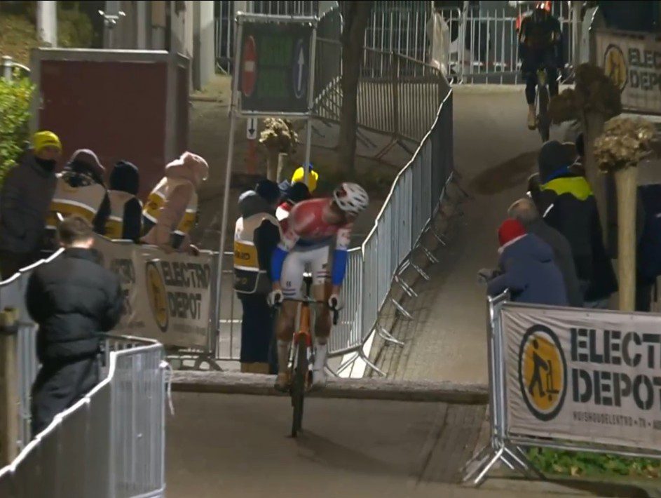 Two young riders, Dutch champion Tibor del Grosso and Belgian champion Thibau Nys, slugged it out under the lights in Tuesday’s special night race round of the 2025-2026 Superprestige series in Diegem, Belgium. Del Grosso was amazed to see his late-race mistake superceded by an even more consequential Nys error and claimed his second consecutive Superprestige victory. Niels Vandeputte leads the series by two points over Michael Vanthourenhout. Tyler Clark was top Canadian in 47th.