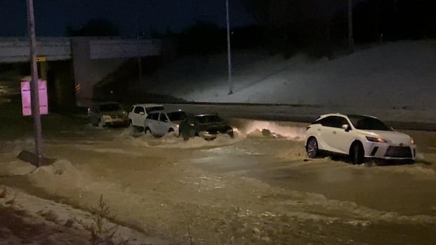 Trevor Sommerfeld, acting battalion chief with the Calgary Fire Department, said there was significant flooding beneath the CPKC rail bridge near 69th Street N.W.