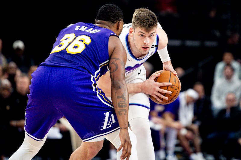 Kyle FilipowskiUtah Jazz forward Kyle Filipowski (22) controls the ball while guarded by Los Angeles Lakers guard Marcus Smart (36) during an NBA game held at the Delta Center in Salt Lake City on Thursday, Dec. 18, 2025. | Isaac Hale, Deseret News