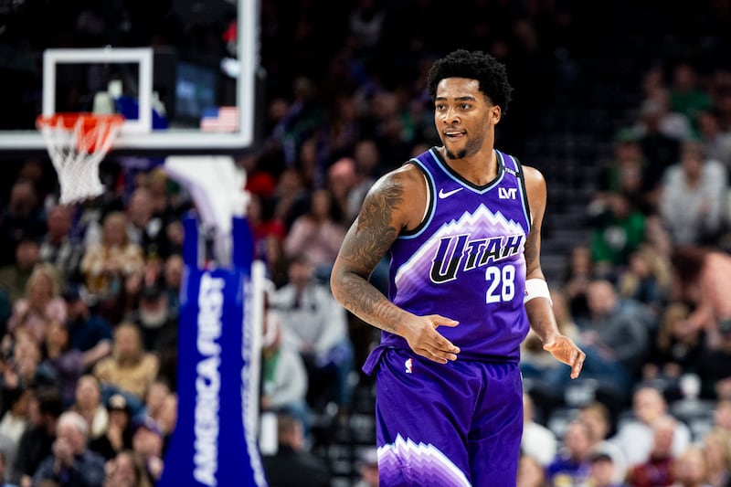Brice SensabaughUtah Jazz forward Brice Sensabaugh (28) gets back on defense after scoring a basket during an NBA game against the Boston Celtics held at the Delta Center in Salt Lake City on Tuesday, Dec. 30, 2025. | Isaac Hale, Deseret News