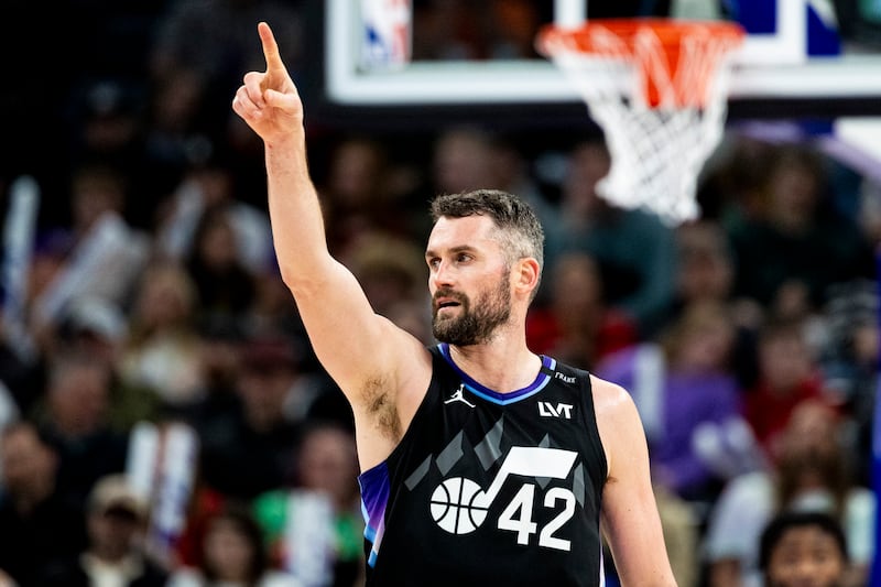 Kevin LoveUtah Jazz forward Kevin Love (42) gestures after a play against the Memphis Grizzlies during an NBA game held at the Delta Center in Salt Lake City on Tuesday, Dec. 23, 2025. | Isaac Hale, Deseret News