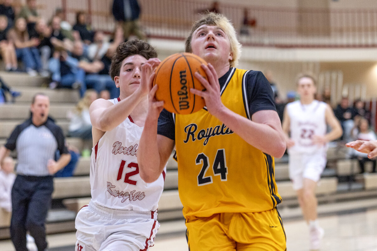 Roy High’s Boston Greenhalgh (24) goes to the rim as Northridge’s Carson Williams (12) gives chase in a region game Saturday, Jan. 3, 2026, in Layton.