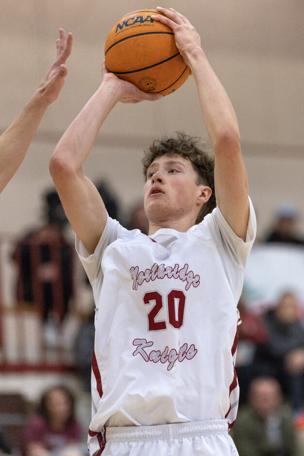 Northridge High’s Howard Hansen rises to shoot against Roy in a region game Saturday, Jan. 3, 2026, in Layton.