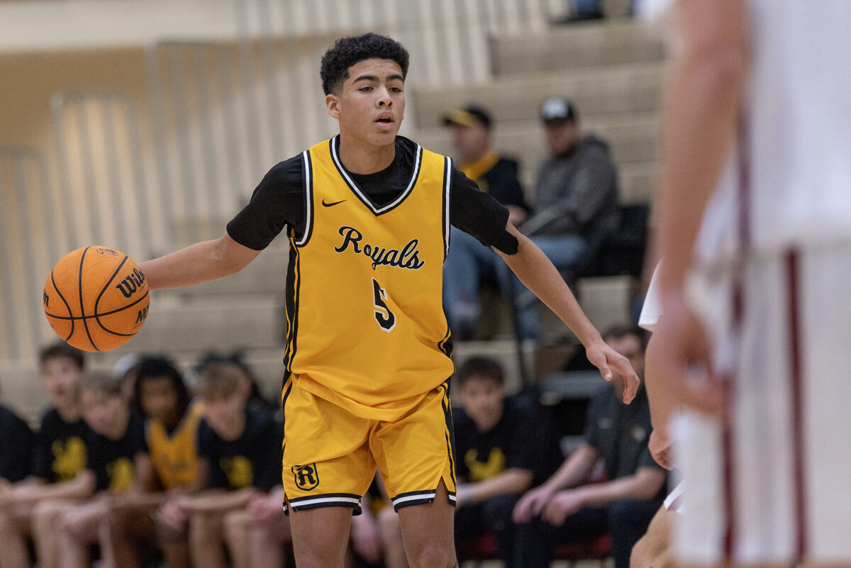 Roy High’s Rock Speredon (1) surveys the court in a region game against Northridge on Saturday, Jan. 3, 2026, in Layton.