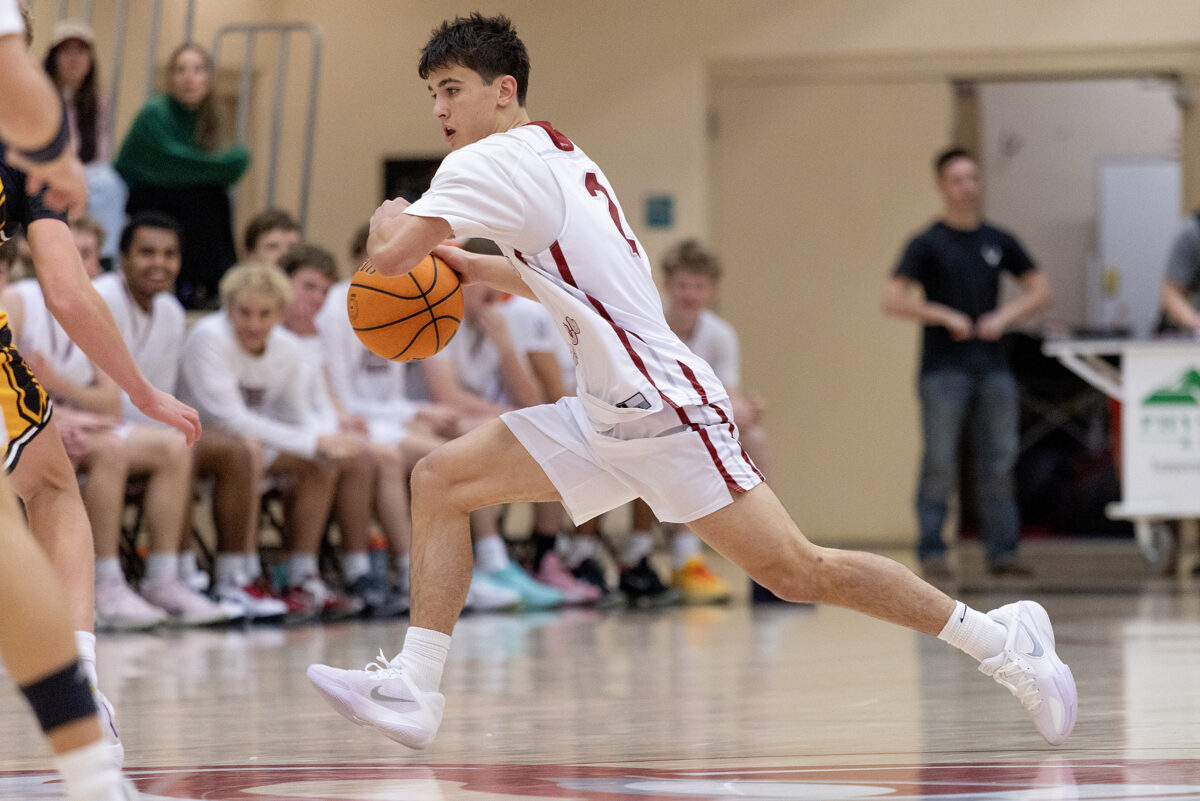 Northridge High’s Jace Whitear pushes the ball up court against Roy in a region game Saturday, Jan. 3, 2026, in Layton.