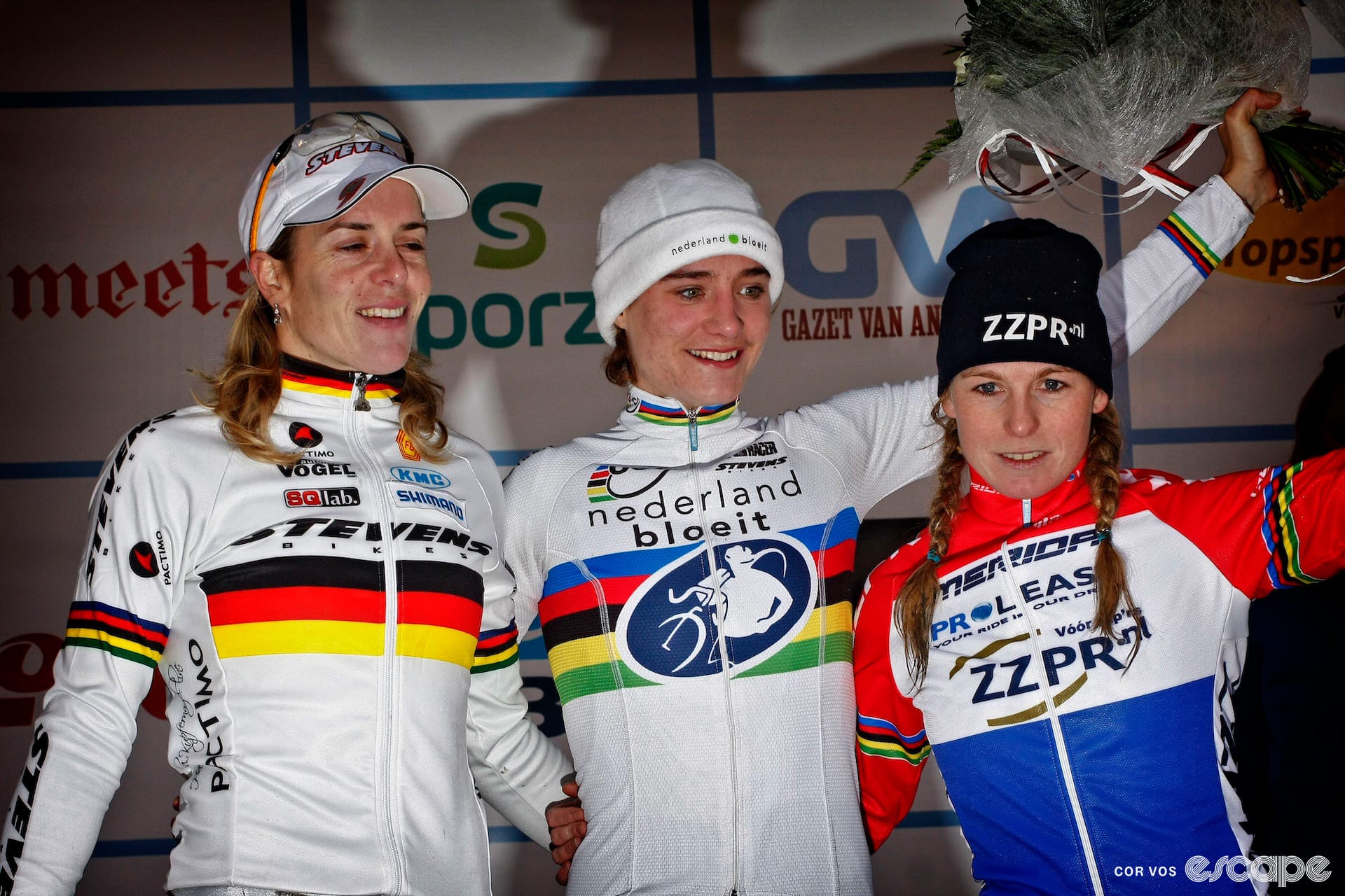 Four-time Azencross winner Marianne Vos on the aforementioned washboard sector; and between multiple winners Hanka Kupfernagel and Daphny van den Brand in 2010, finally breaking their stranglehold once and for all. The German-Dutch duo had shared all but one of the first 11 editions between themselves – 18-year-old Vos showed early signs of future dominance on this course with a narrow victory in 2005 (of which there is available footage on YouTube!).