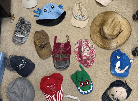 A handful of the 343 hats that were recovered in Yellowstone National Park in 2025. Photo courtesy of USGS