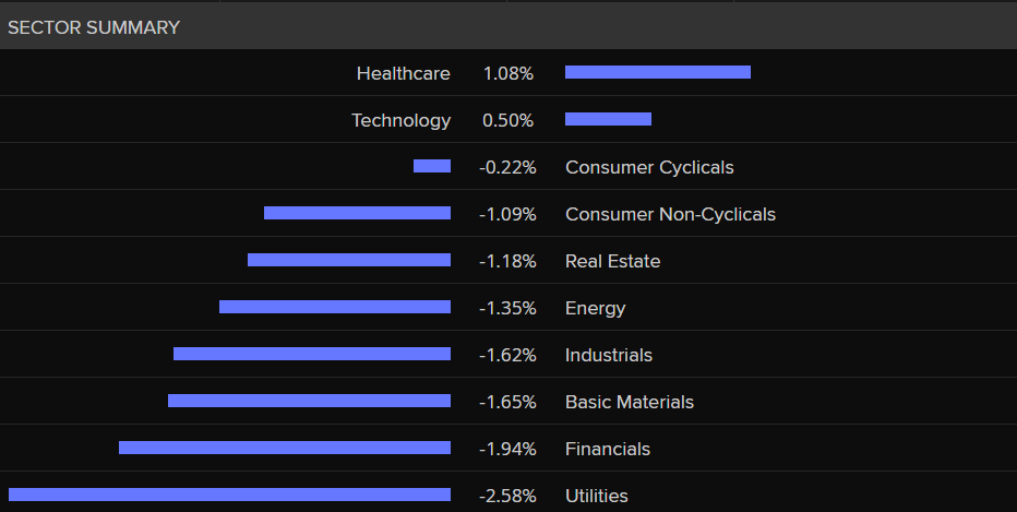 Dow Jones sector summary. (Refinitiv)