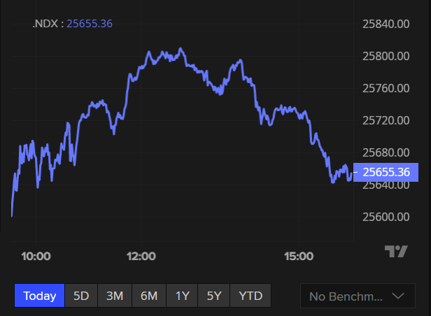 Nasdaq is up +0.4% to 25,734 points.