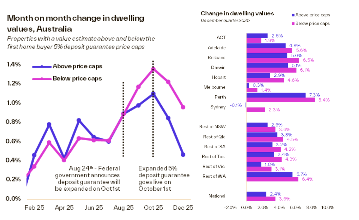 “The expanded 5% deposit guarantee has sharpened demand at lower price points, with under‑cap markets outperforming across almost nine‑in‑10 regions,” said Tim Lawless, Cotality’s research director.