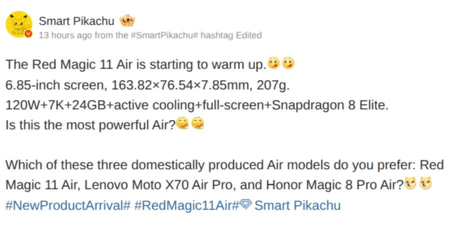 All of these specs are what you would expect from a regular, decently weighted smartphone: a big display, a top-tier chip, and a large battery. It also seems that the Red Magic 11 Air is a regular smartphone disguised with an “Air” moniker.