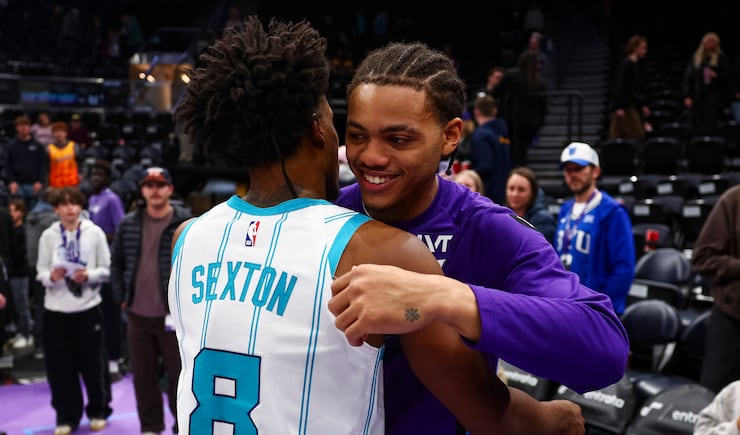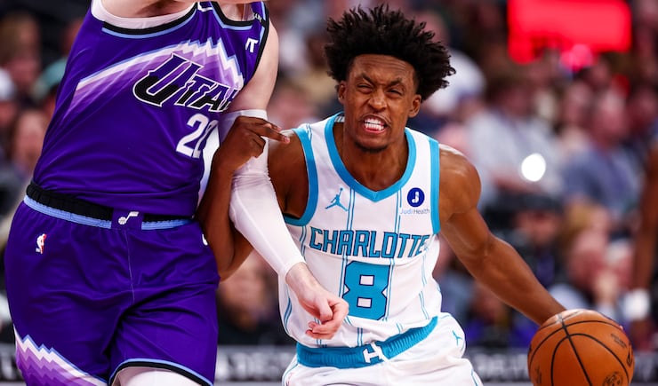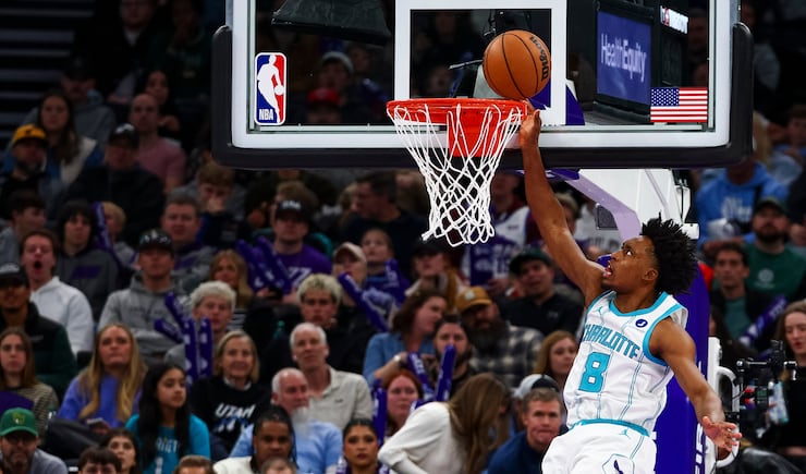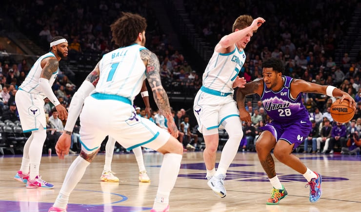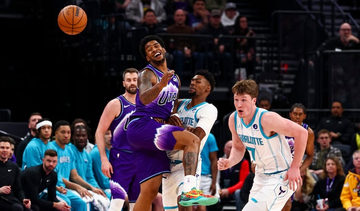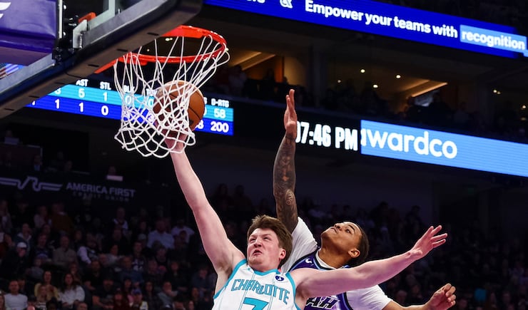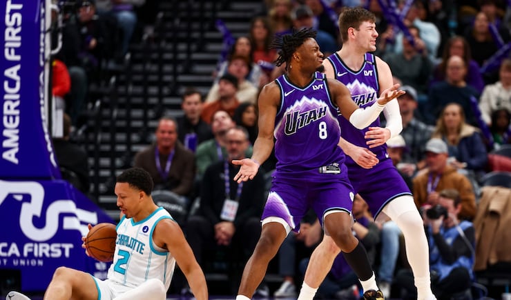 Charlotte Hornets guard LaMelo Ball (1) celebrates after making a 3-pointer during the first half of an NBA game against the Utah Jazz at the Delta Center in Salt Lake City on Saturday, Jan. 10, 2026. | Rio Giancarlo, Deseret News Charlotte Hornets guard Sion James (4) reacts after a made 3-pointer by a teammate during the first half of an NBA game against the Utah Jazz at the Delta Center in Salt Lake City on Saturday, Jan. 10, 2026. | Rio Giancarlo, Deseret News Charlotte Hornets guard Collin Sexton (8) drives to the basket against Utah Jazz center Kyle Filipowski (22) during the first half of an NBA game at the Delta Center in Salt Lake City on Saturday, Jan. 10, 2026. | Rio Giancarlo, Deseret News Utah Jazz head coach Will Hardy looks on during the first half of an NBA game against the Charlotte Hornets at the Delta Center in Salt Lake City on Saturday, Jan. 10, 2026. | Rio Giancarlo, Deseret News Utah Jazz forward Brice Sensabaugh (28) reacts after turning over the ball after not being able to control a pass during the first half of an NBA game against the Charlotte Hornets at the Delta Center in Salt Lake City on Saturday, Jan. 10, 2026. | Rio Giancarlo, Deseret News Former Jazz and current Charlotte Hornets guard Collin Sexton (8) acknowledges the crowd after checking into the game for the first time since being traded during the offseason during the first half of an NBA game against the Utah Jazz at the Delta Center in Salt Lake City on Saturday, Jan. 10, 2026. | Rio Giancarlo, Deseret News Charlotte Hornets guard Collin Sexton (8) moves the ball upcourt during the first half of an NBA game against the Utah Jazz at the Delta Center in Salt Lake City on Saturday, Jan. 10, 2026. | Rio Giancarlo, Deseret News Charlotte Hornets guard Collin Sexton (8) celebrates making a 3-pointer during the first half of an NBA game against the Utah Jazz at the Delta Center in Salt Lake City on Saturday, Jan. 10, 2026. | Rio Giancarlo, Deseret News Utah Jazz guard Keyonte George (3) makes a heart with his hands during his pregame routine before an NBA game against the Charlotte Hornets at the Delta Center in Salt Lake City on Saturday, Jan. 10, 2026. | Rio Giancarlo, Deseret News Fans cheer as they see themselves on the Jumbotron behind the Utah Mammoth mascot Tusky during the first half of an NBA game between the Utah Jazz and the Charlotte Hornets at the Delta Center in Salt Lake City on Saturday, Jan. 10, 2026. | Rio Giancarlo, Deseret News Charlotte Hornets guard LaMelo Ball (1) looks on during warm ups before an NBA game against the Utah Jazz at the Delta Center in Salt Lake City on Saturday, Jan. 10, 2026. | Rio Giancarlo, Deseret News Charlotte Hornets guard LaMelo Ball (1) stretches before an NBA game against the Utah Jazz at the Delta Center in Salt Lake City on Saturday, Jan. 10, 2026. | Rio Giancarlo, Deseret News Charlotte Hornets guard Collin Sexton (8) moves the ball up court during the first half of an NBA game against the Utah Jazz at the Delta Center in Salt Lake City on Saturday, Jan. 10, 2026. | Rio Giancarlo, Deseret News Charlotte Hornets guard LaMelo Ball (1) celebrates making a three pointer during the second half of an NBA game against the Utah Jazz at the Delta Center in Salt Lake City on Saturday, Jan. 10, 2026. | Rio Giancarlo, Deseret News Utah Jazz guard Isaiah Collier (8) and forward Kyle Filipowski (22) react after Filipowski was called for a foul on Charlotte Hornets forward Grant Williams (2) during the second half of an NBA game at the Delta Center in Salt Lake City on Saturday, Jan. 10, 2026. | Rio Giancarlo, Deseret News Utah Jazz forward Cody Williams (5) drives to the basket during the second half of an NBA game against the Charlotte Hornets at the Delta Center in Salt Lake City on Saturday, Jan. 10, 2026. | Rio Giancarlo, Deseret News Charlotte Hornets guard Collin Sexton (8) drives to the basket for a layup against Utah Jazz guard Isaiah Collier (8) during the second half of an NBA game at the Delta Center in Salt Lake City on Saturday, Jan. 10, 2026. | Rio Giancarlo, Deseret News Charlotte Hornets guard Collin Sexton (8) hits his head as he celebrates making a three pointer during the second half of an NBA game against the Utah Jazz at the Delta Center in Salt Lake City on Saturday, Jan. 10, 2026. Sexton scored 15 points in his return to the Delta Center after being traded by the Jazz during the off-season. | Rio Giancarlo, Deseret News Utah Jazz guard Walter Clayton Jr. (13) makes a pass during the second half of an NBA game against the Charlotte Hornets at the Delta Center in Salt Lake City on Saturday, Jan. 10, 2026. | Rio Giancarlo, Deseret News Utah Jazz forward Kyle Anderson (2) drives to the basket against Charlotte Hornets center Ryan Kalkbrenner (11) during the second half of an NBA game at the Delta Center in Salt Lake City on Saturday, Jan. 10, 2026. | Rio Giancarlo, Deseret News Utah Jazz forward Brice Sensabaugh (28) grimaces as he hits the floor after turning the ball over during the second half of an NBA game against the Charlotte Hornets at the Delta Center in Salt Lake City on Saturday, Jan. 10, 2026. | Rio Giancarlo, Deseret News Utah Jazz head coach Will Hardy, right, frowns while talking with Utah Jazz owner Ryan Smith, center, and CEO Danny Ainge, left, during the second half of an NBA game against the Charlotte Hornets at the Delta Center in Salt Lake City on Saturday, Jan. 10, 2026. | Rio Giancarlo, Deseret News Utah Jazz forward Kevin Love (42) talks with head coach Will Hardy during a timeout during the second half of an NBA game against the Charlotte Hornets at the Delta Center in Salt Lake City on Saturday, Jan. 10, 2026. | Rio Giancarlo, Deseret News Fans try to distract Charlotte Hornets forward Moussa Diabate (14) as he attempts free throws during the second half of an NBA game against the Utah Jazz at the Delta Center in Salt Lake City on Saturday, Jan. 10, 2026. | Rio Giancarlo, Deseret News Utah Jazz guard Walter Clayton Jr. (