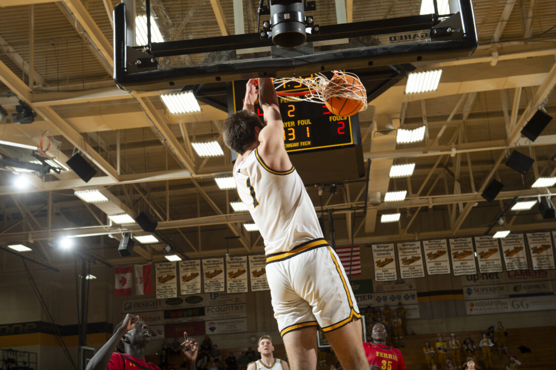 The visitors seemed to retain the momentum out of the break, as they orchestrated a 7-0 run to start the second half, forcing a Michigan Tech timeout less than 90 seconds into the period. From there, the Huskies went on a run of their own, pouring on 12-straight points with five points from Tomashek, including a rare dunk by the All-American, while sophomore guard Gabe Smith converted an and-one and a dunk as senior guard Nate Abel chipped in with a jumper to make it 50-38 with 16:12 to go.