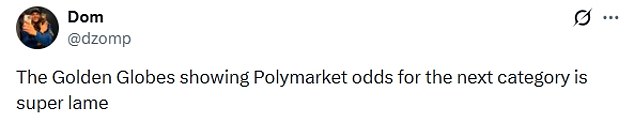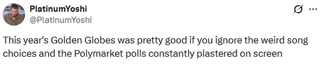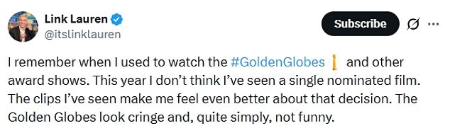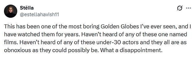 Viewers online also slammed the Golden Globes as ‘cringe’ and a ‘disappointment.’Â Â